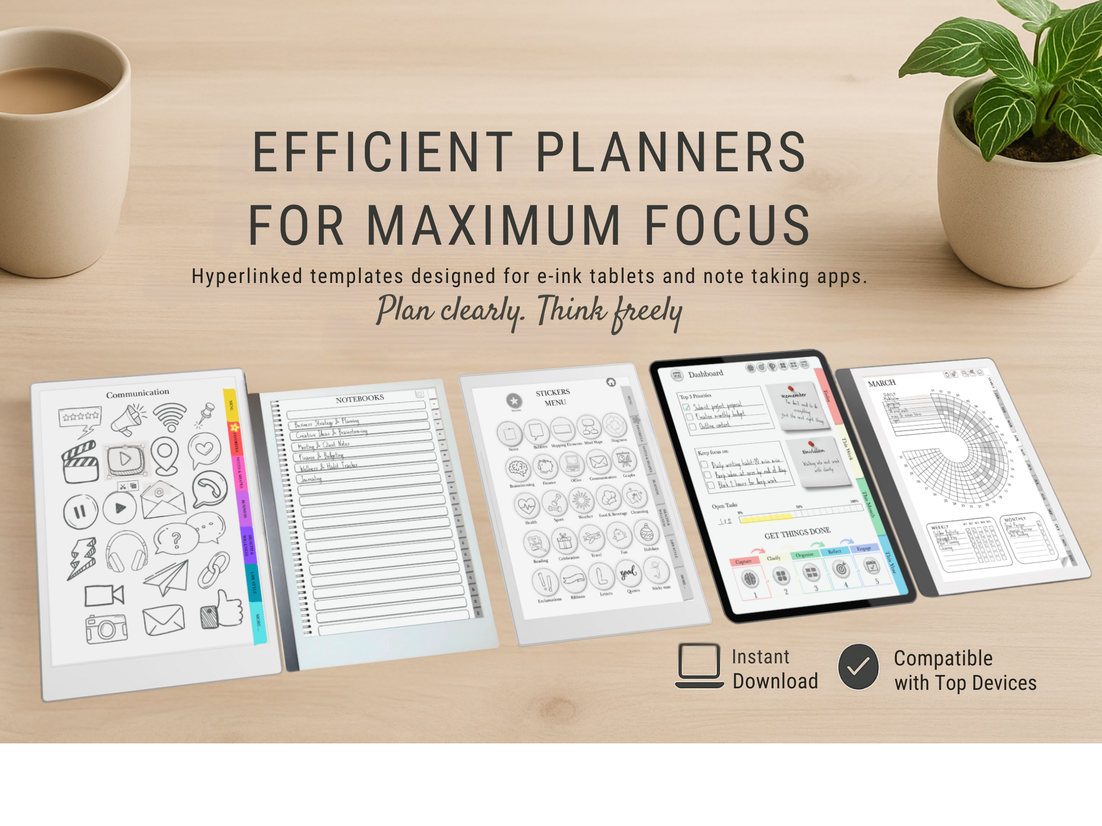 Color Notebook Bundle for reMarkable Paper Pro Move: 8+1 Colored Paper Notebooks with tabs Hyperlinked and Indexed Digital Notebooks Bundle