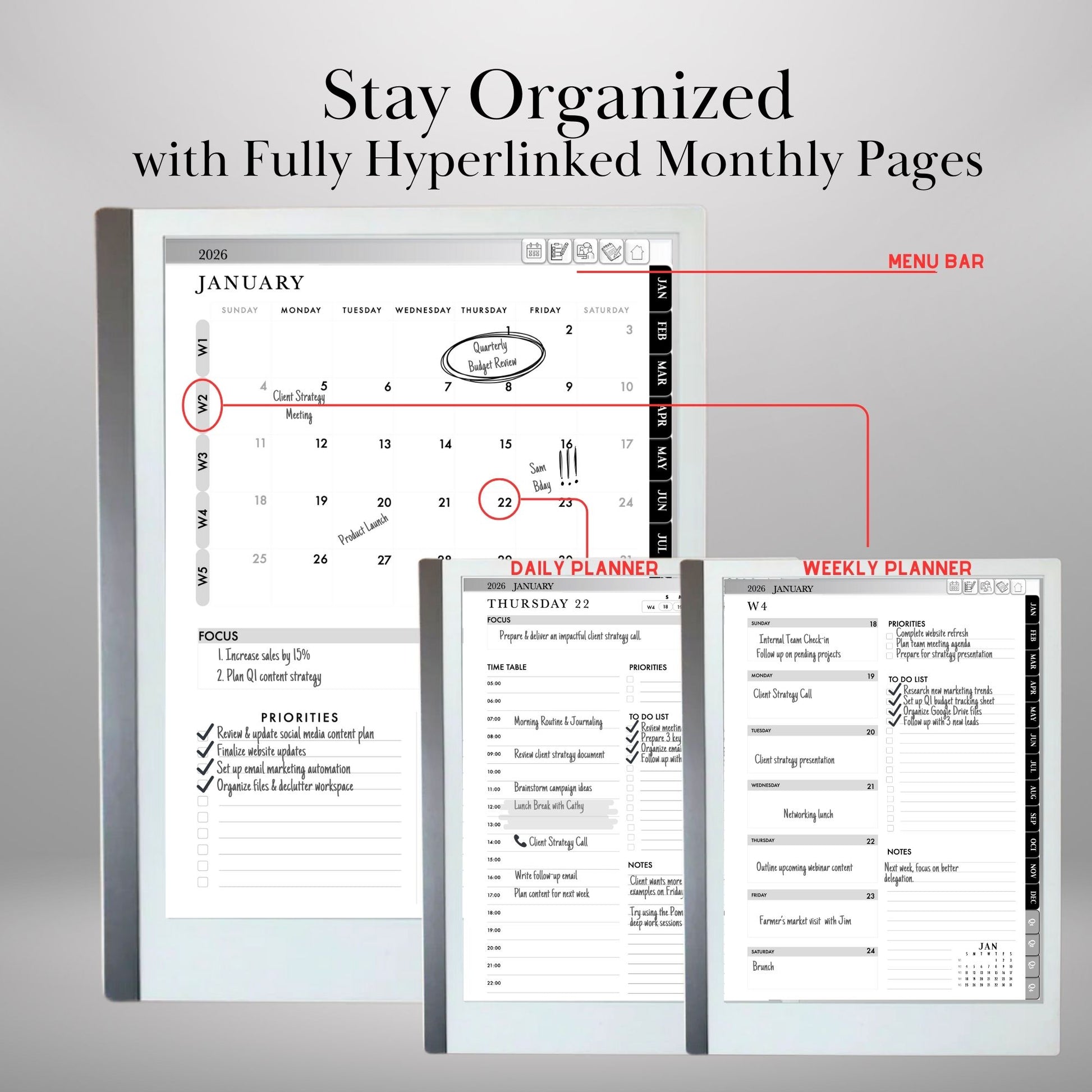 DIGITAL DOWNLOAD – 2026 Hyperlinked Digital Planner for reMarkable 2 & Paper Pro