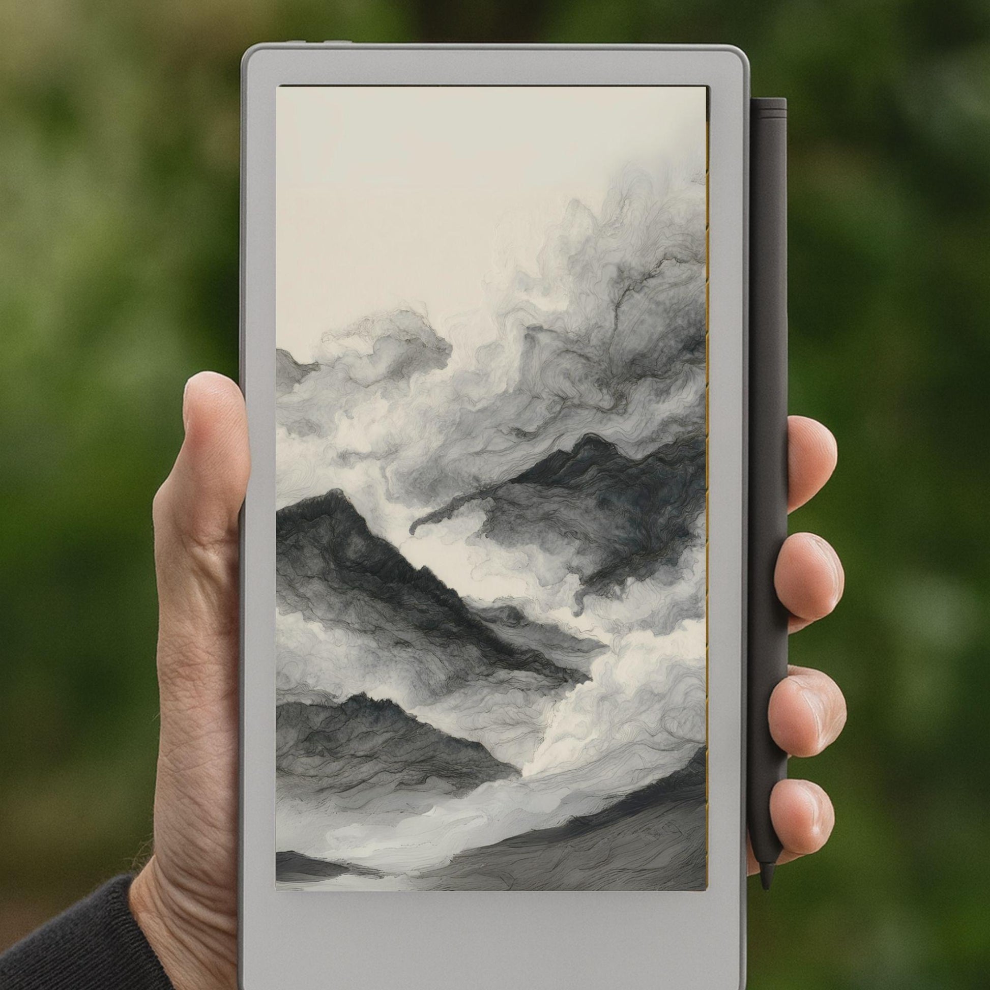 Each design captures the natural beauty of ink in motion—delicate swirls, fluid gradients, and soft organic textures that appear almost alive on eInk. The result is a serene, design-forward look that inspires focus, mindfulness, and creativity.