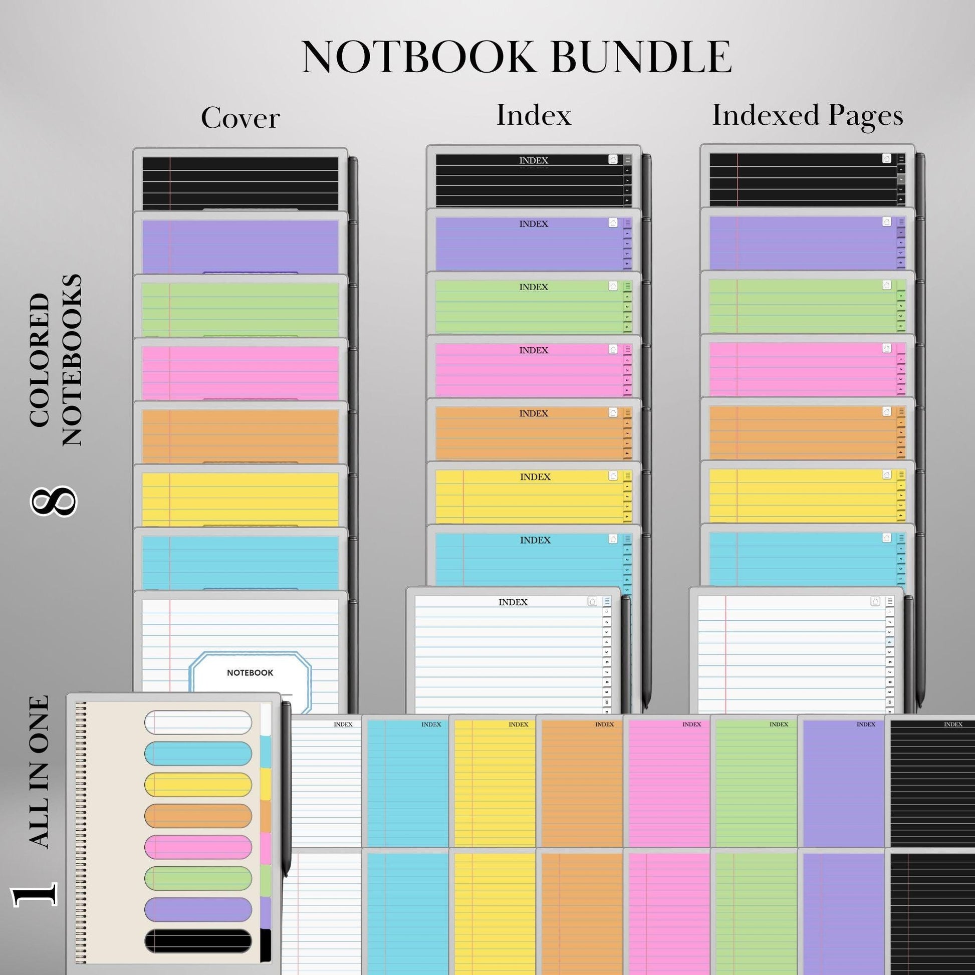 ✔ 📖 8 Individual Colored Digital Notebooks + 1 All-in-One Notebook