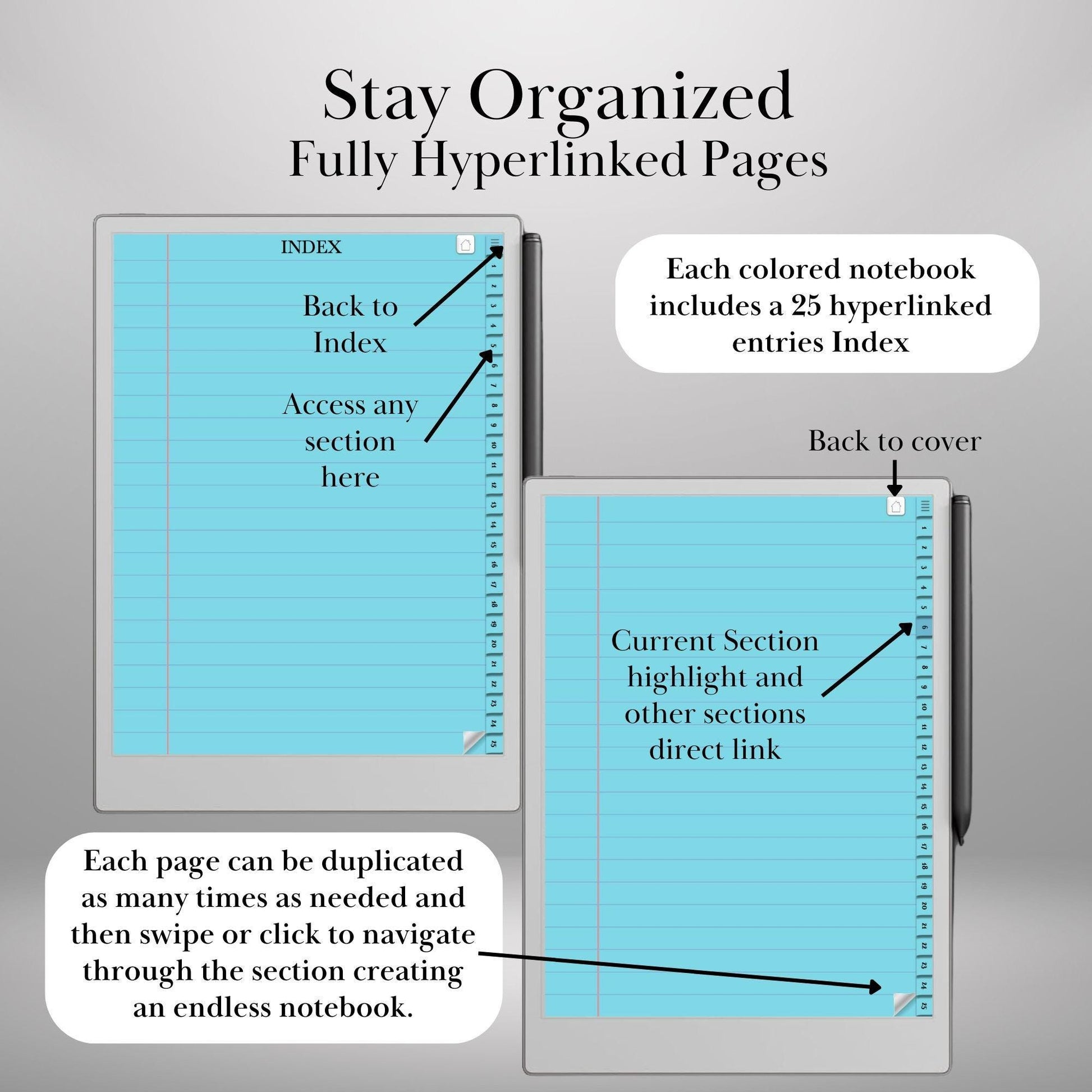 ✅ Hyperlinked & Indexed for Quick Navigation – Easily switch between sections and notebooks with one-tap links.