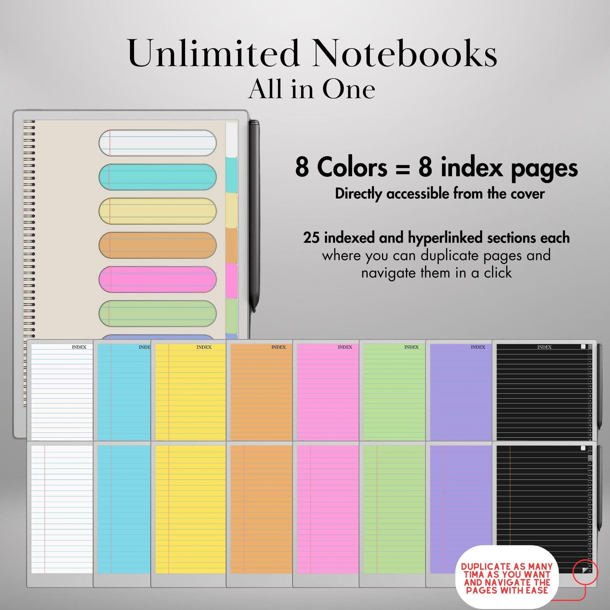 Color Paper Notebook Bundle for reMarkable Paper Pro 8+1 Color Paper Notebooks Hyperlinked and Indexed Digital Notebook e-Ink Template
