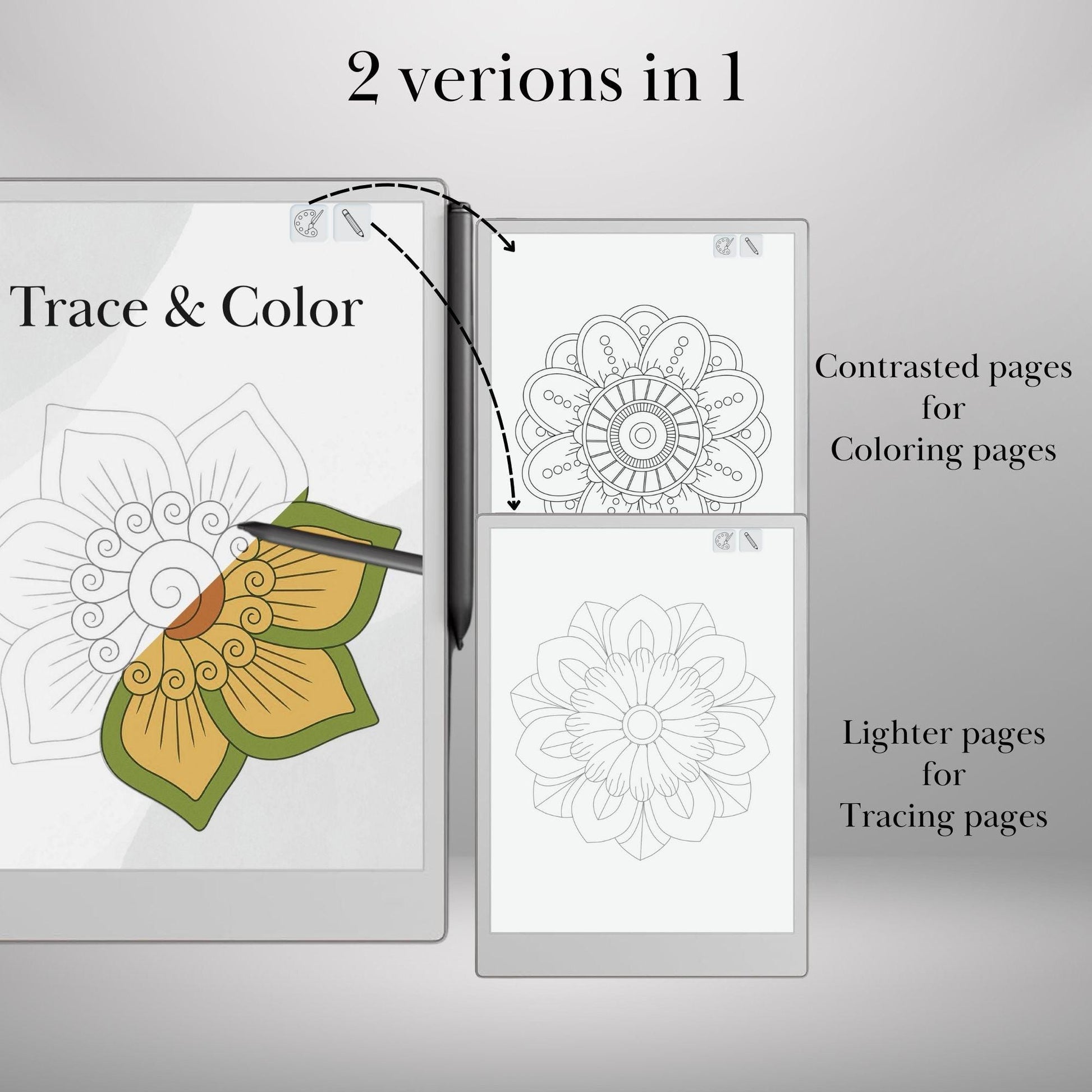Coloring & Tracing Book for reMarkable Paper Pro and reMarkable 2 | Mindfulness reMarkable Templates | reMarkable Activity eInk Tracing Book