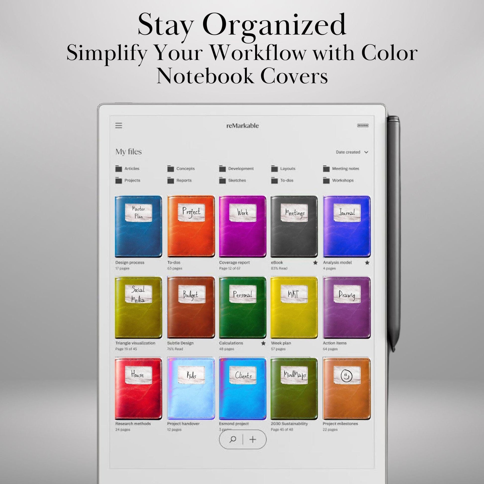 📂 DIGITAL DOWNLOAD – 20 Colores Notebook Covers for reMarkable Paper Pro
