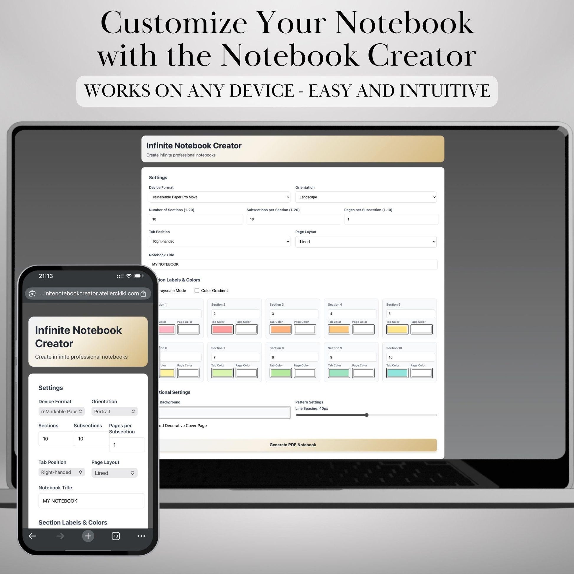🖋️ HOW IT WORKS 1️⃣ Purchase & download the access file 2️⃣ Open the Notebook Creator on any device 3️⃣ Choose your tabs, layouts, colors, and orientation 4️⃣ Click Generate PDF Notebook 5️⃣ Upload to your reMarkable 6️⃣ Enjoy your fully personalized infinite notebook!