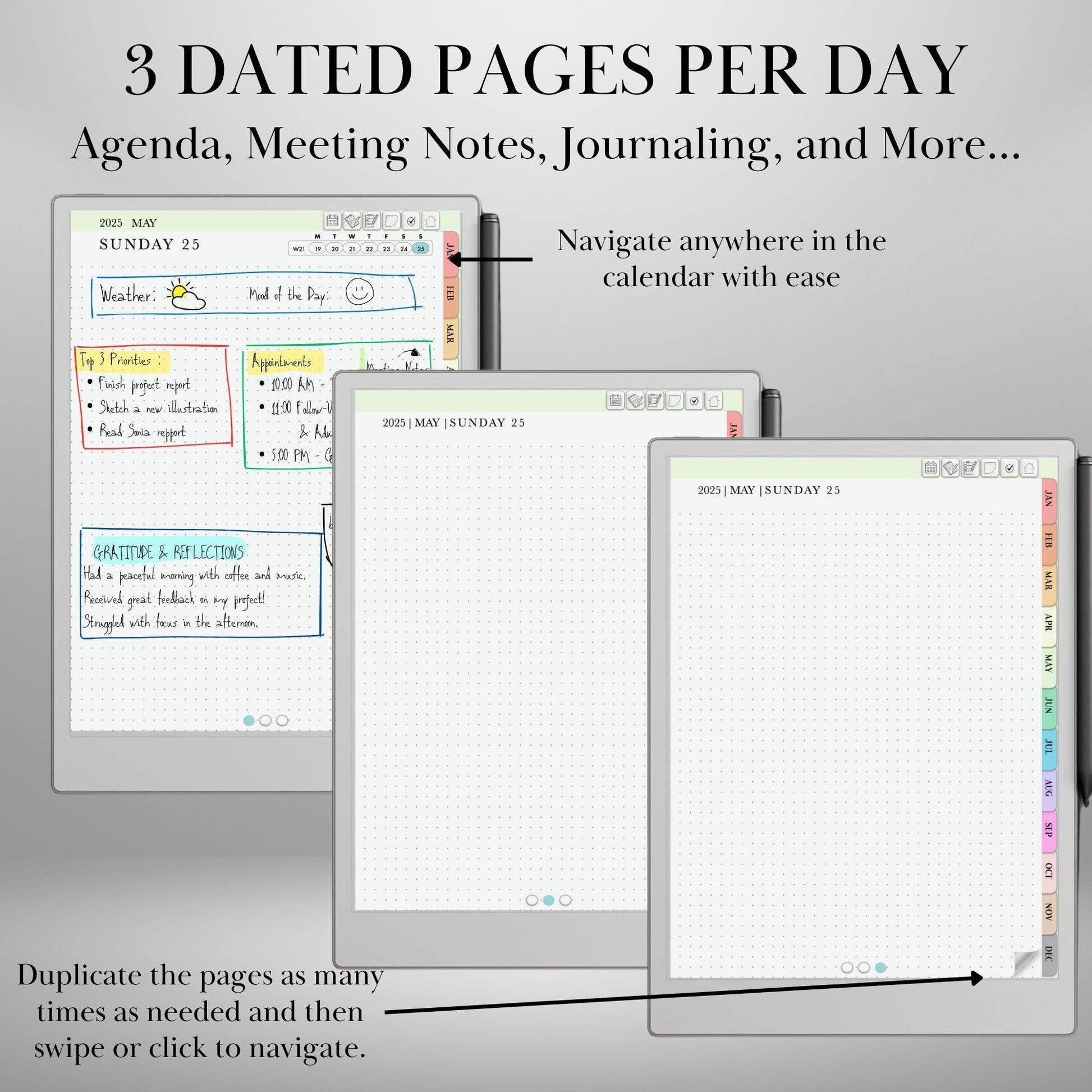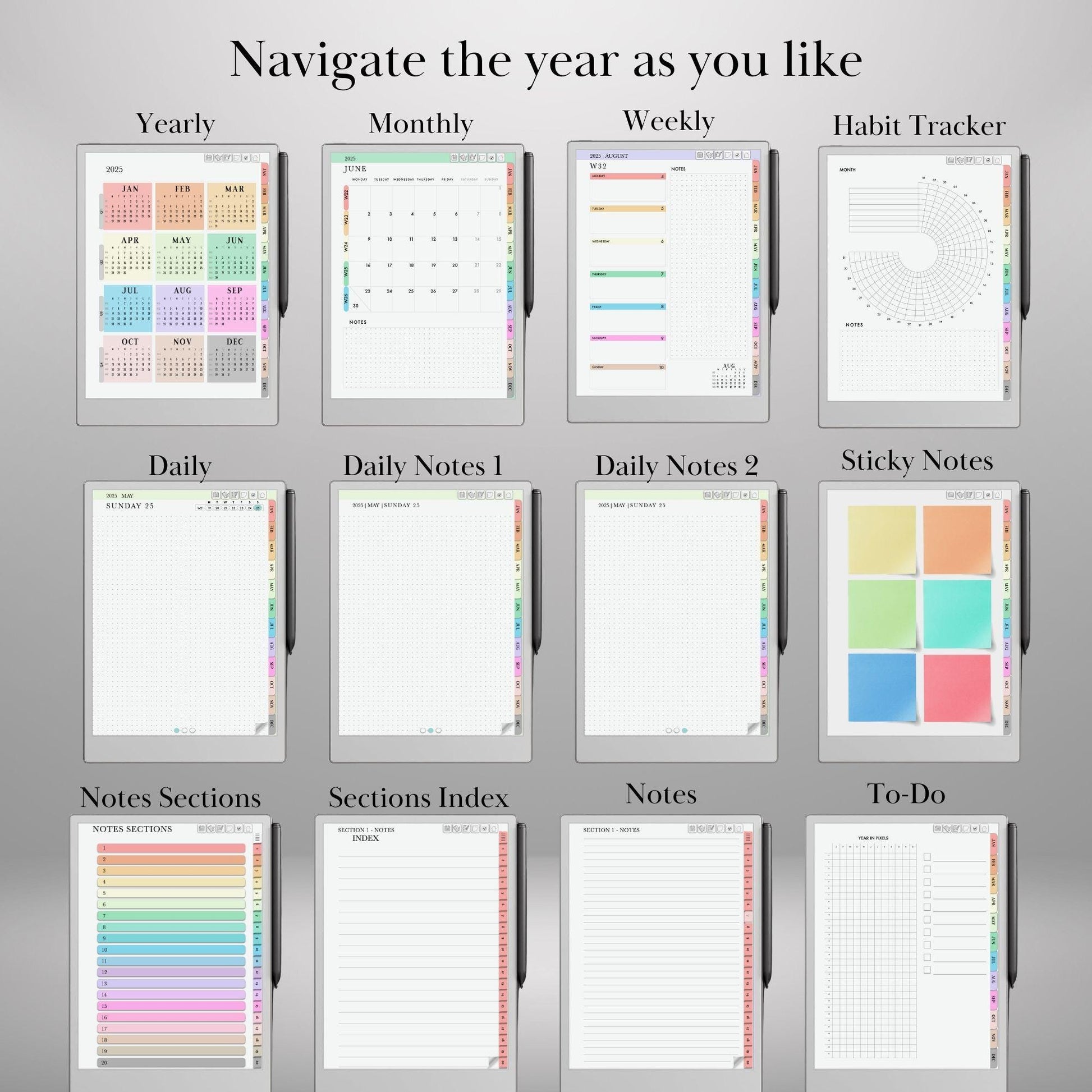 π DIGITAL DOWNLOAD β 2025 Color Daily Journal & Planner for reMarkable Paper Pro