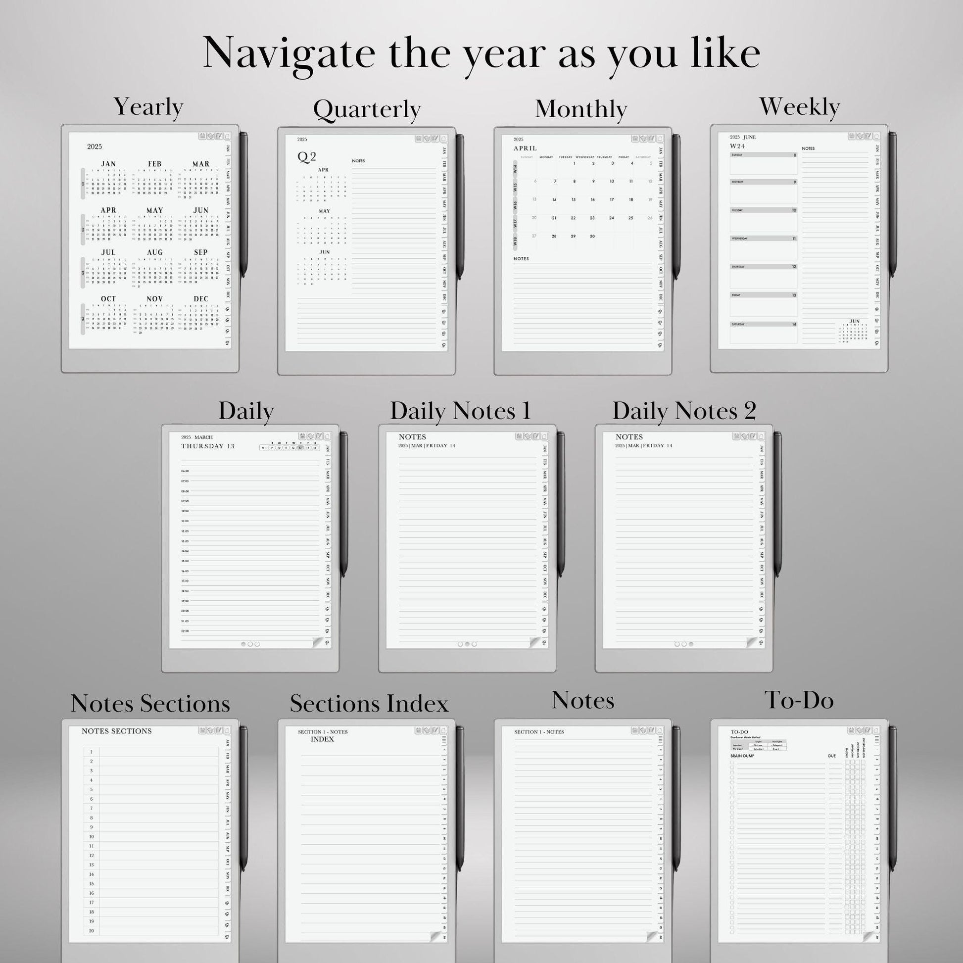 ✔ 🔗 Seamless Hyperlinked Navigation – Jump between months, weeks, tasks, and notes with a tap.