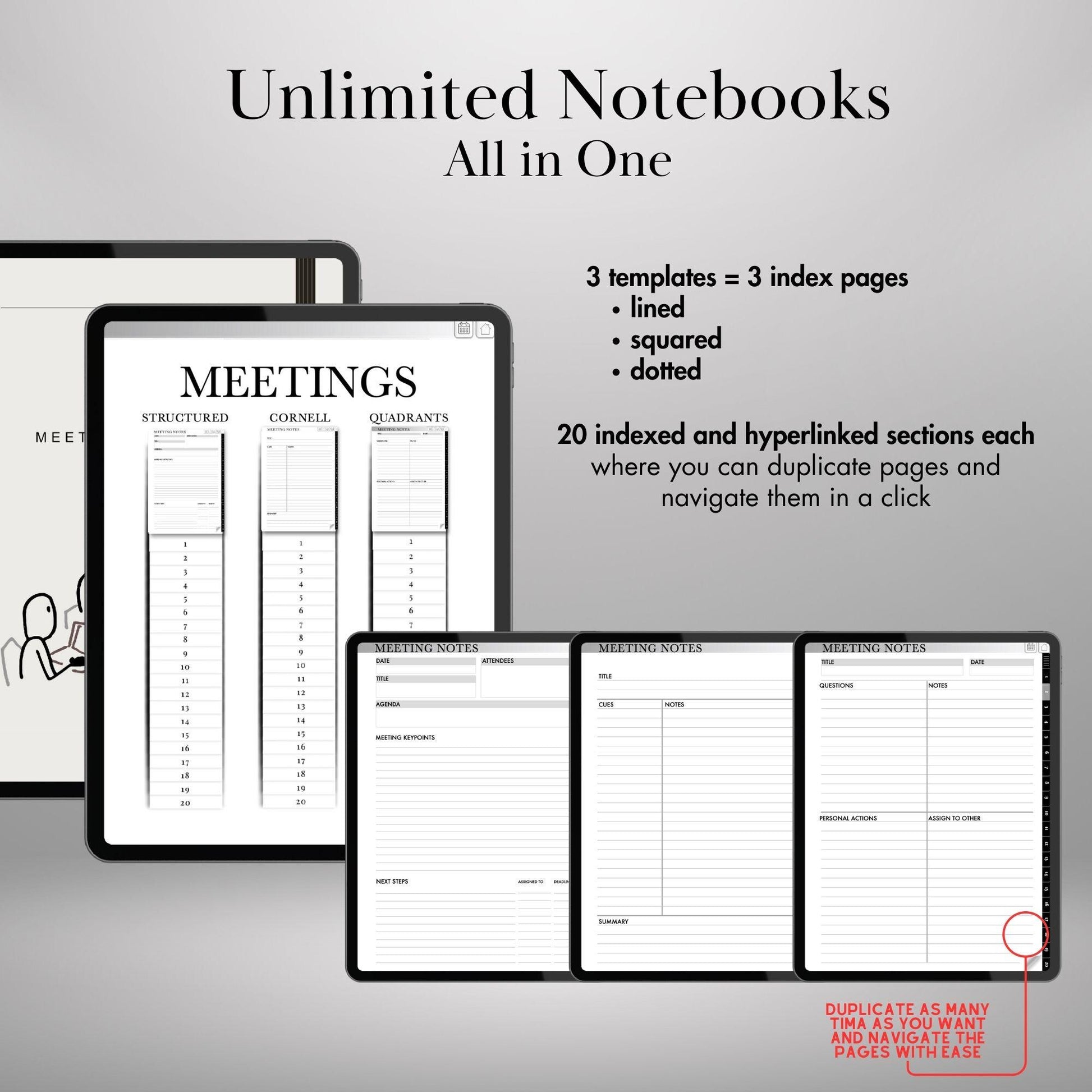 📓 DIGITAL DOWNLOAD – Hyperlinked Meeting Notebook Bundle for GoodNotes, Notability & Digital Note-Taking Apps
