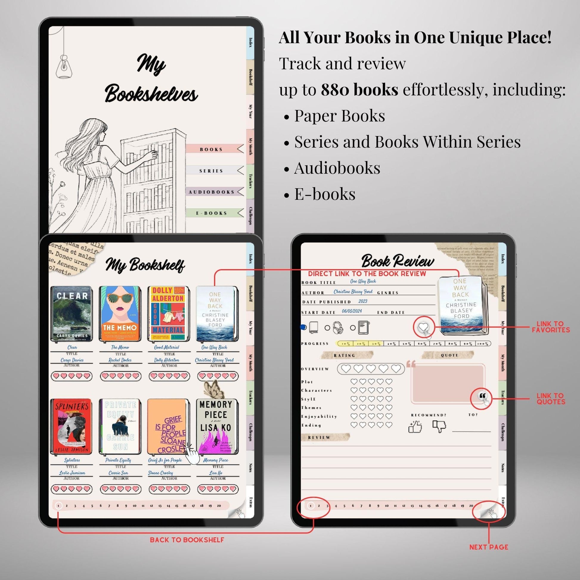 Digital Reading Journal | Digital Reading Planner GoodNotes, Ipad | Book Lovers’ Reading Log, Reading Tracker, Book Shelf, Book Review