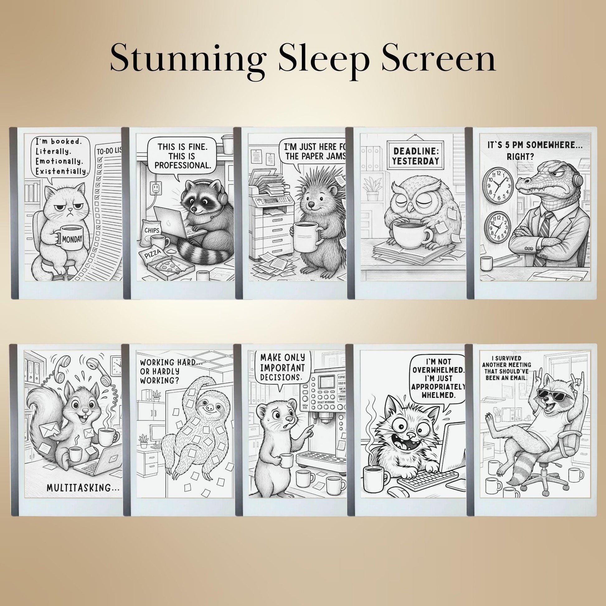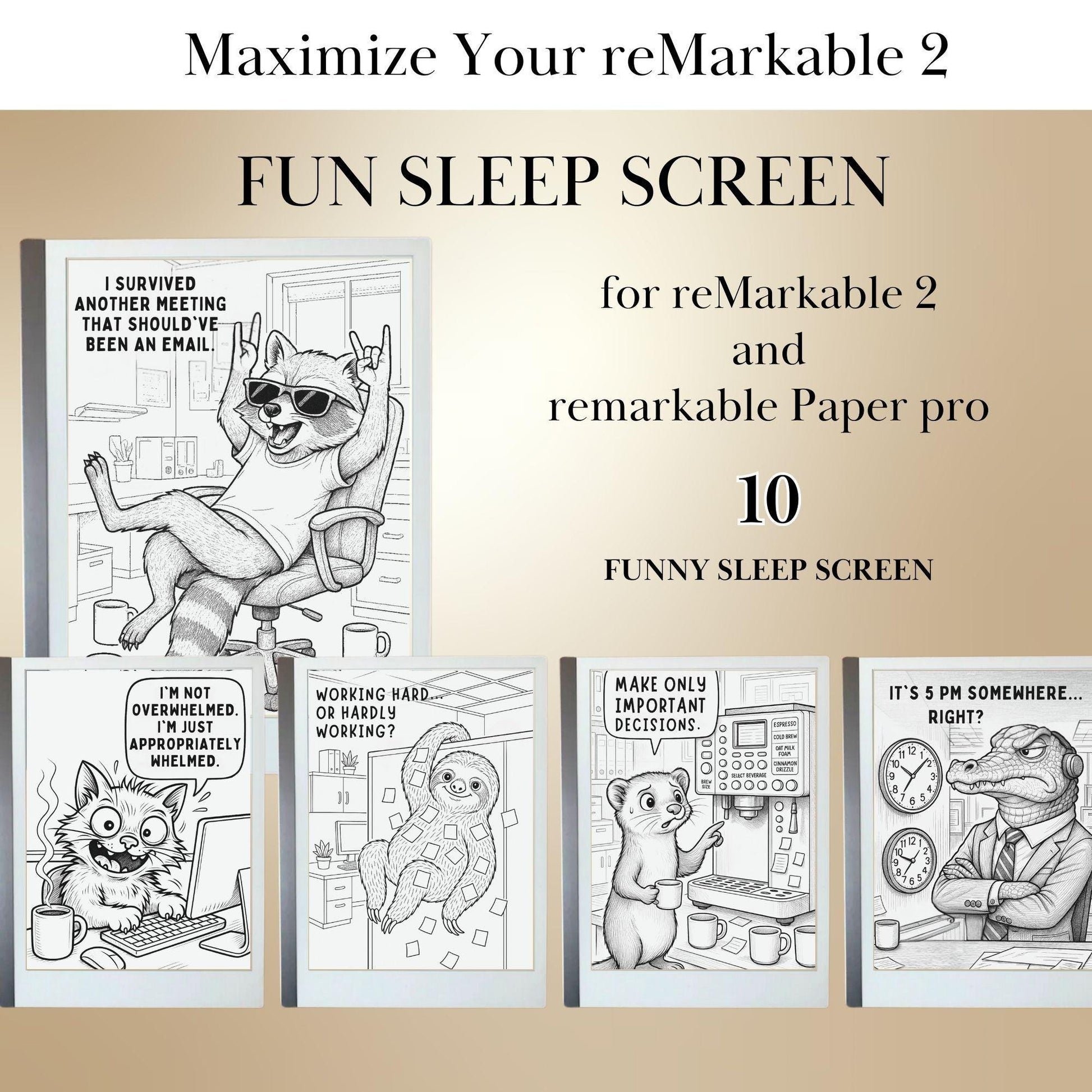 📂 DIGITAL DOWNLOAD – 10 Funny & Sarcastic Sleep Screens for reMarkable 2