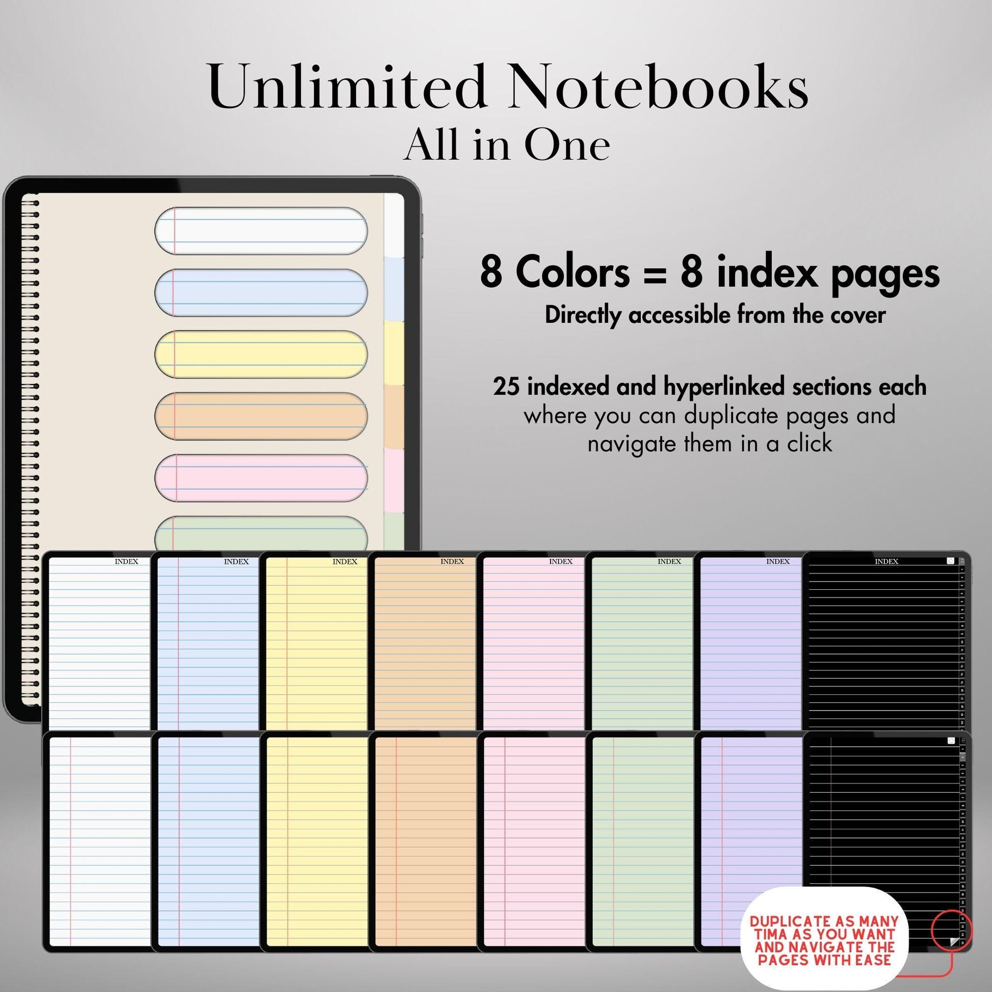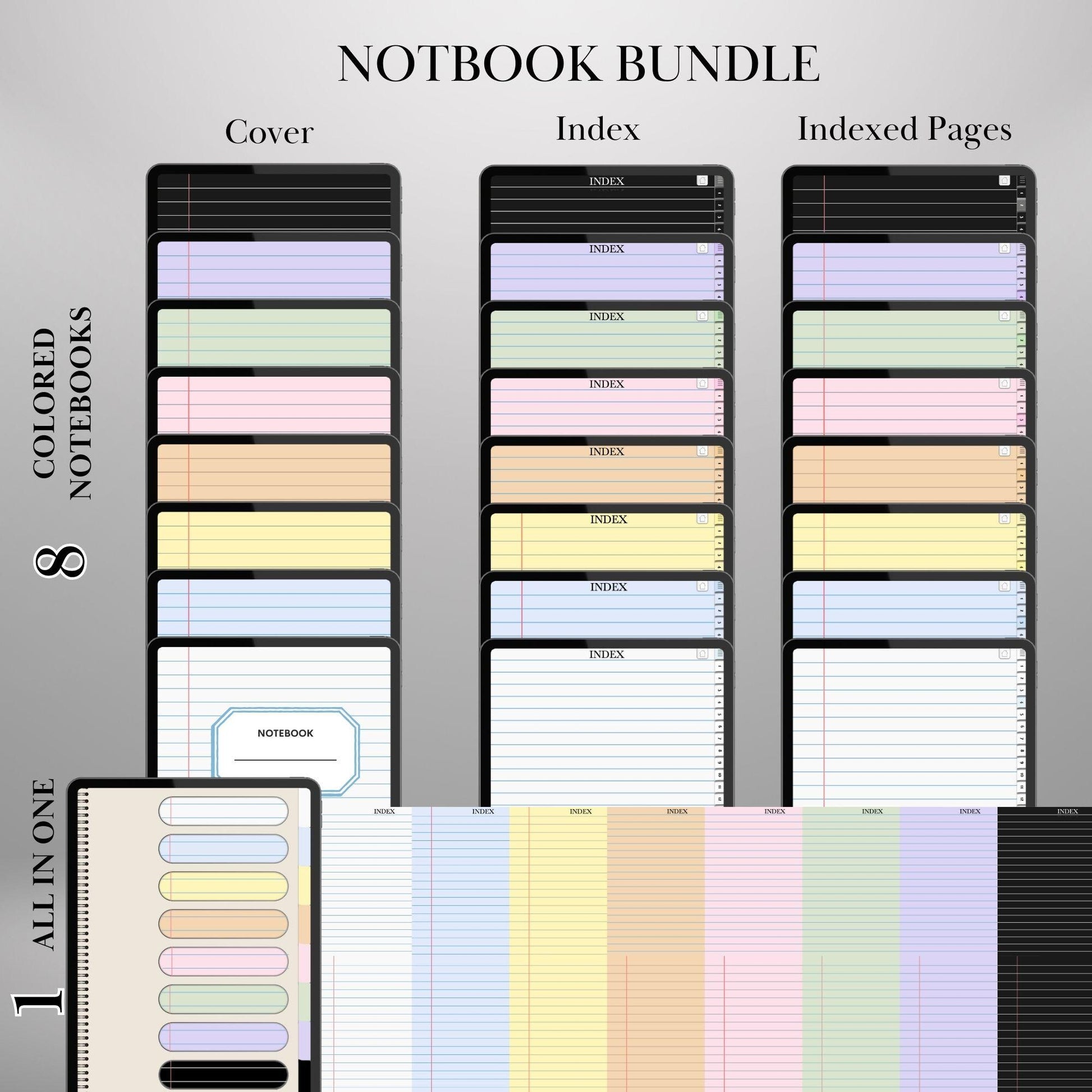 Goodnotes Digital Notebook with tabs | Ipad Notebook | Hyperlinked PDF | 8+1 Colored Paper Notebook template | Digital Notebook Template
