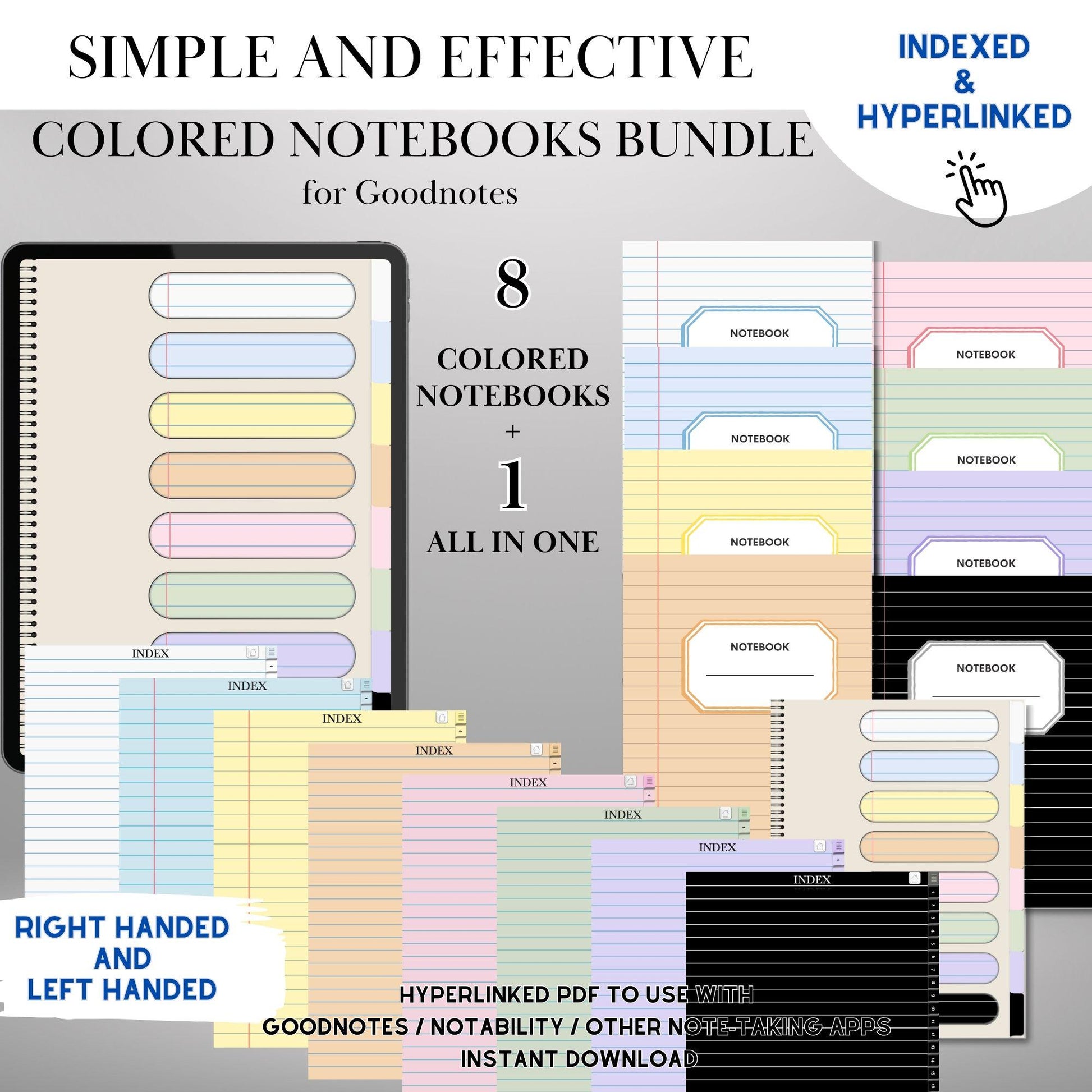 π DIGITAL DOWNLOAD β Hyperlinked Color Paper Notebook Bundle for GoodNotes, Notability & iPad