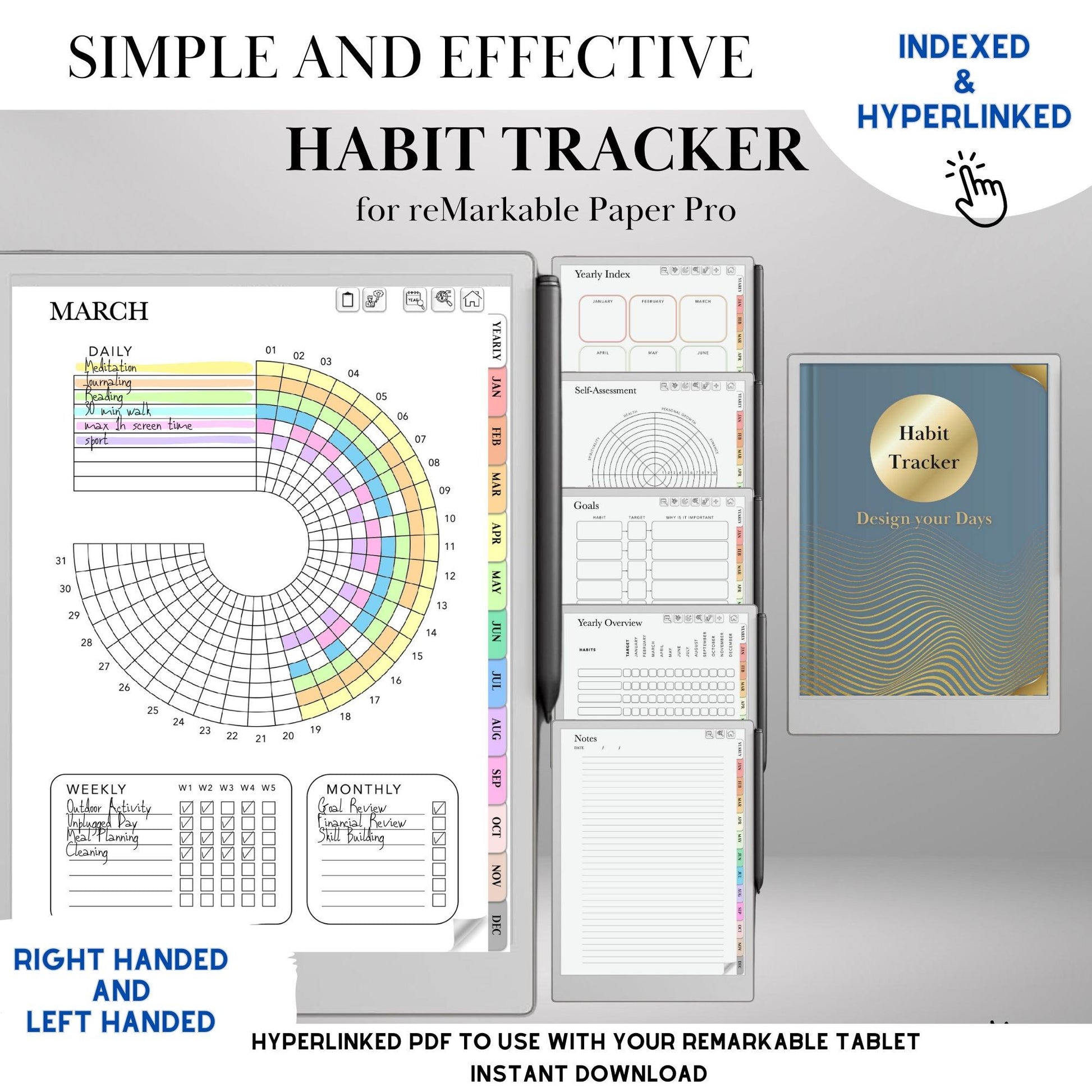Habit Tracker for reMarkable Paper Pro and Remarkable 2 Hyperlinked PDF Template Digital Wellness Tracker Templates Productivity Template