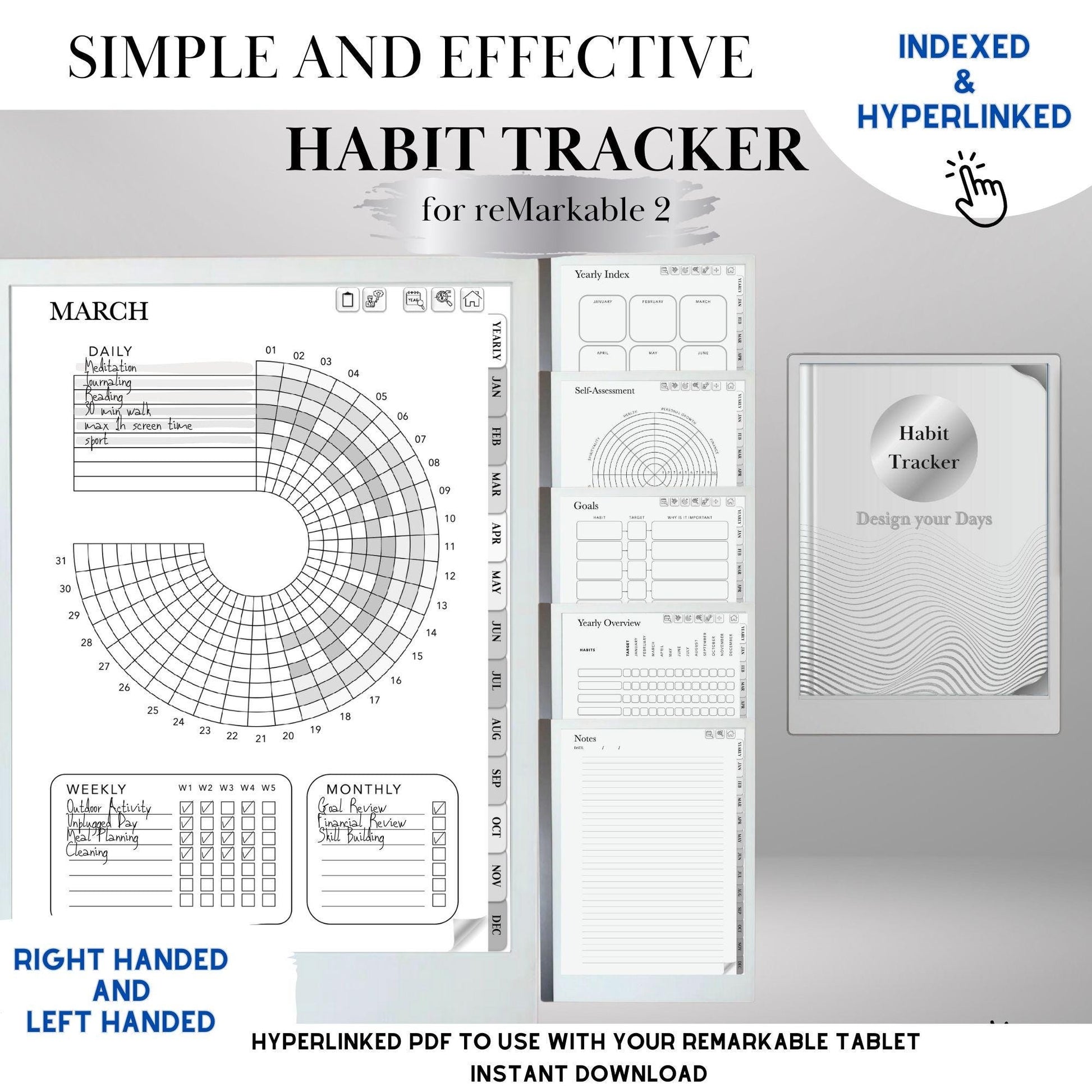 Habit Tracker for reMarkable 2 Self Care Tracker Hyperlinked PDF Template Minimalist Goal Tracker Templates Productivity Template e-ink