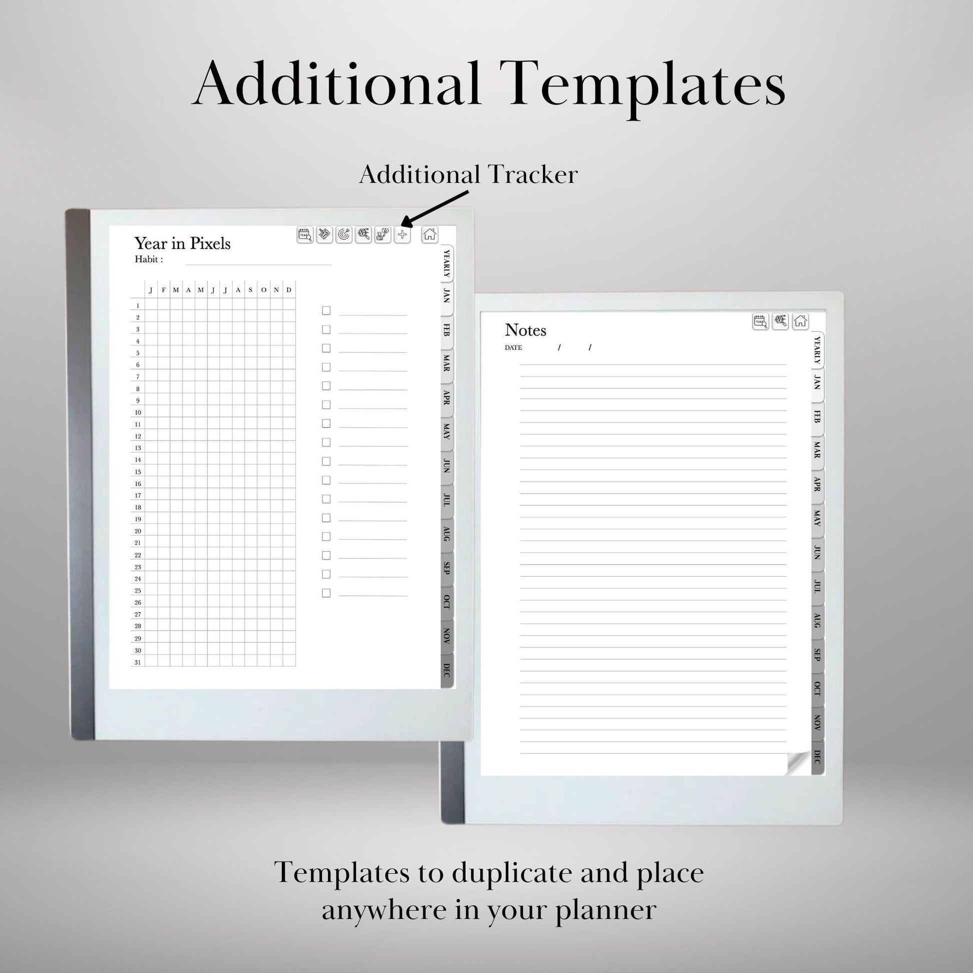 Stay focused and consistent with this minimalist black and white habit tracker, designed specifically for the reMarkable 2. With a clean, hyperlinked structure and distraction-free layout, this planner helps you build habits, track your goals, and reflect on your progress—all perfectly optimized for your eInk device.