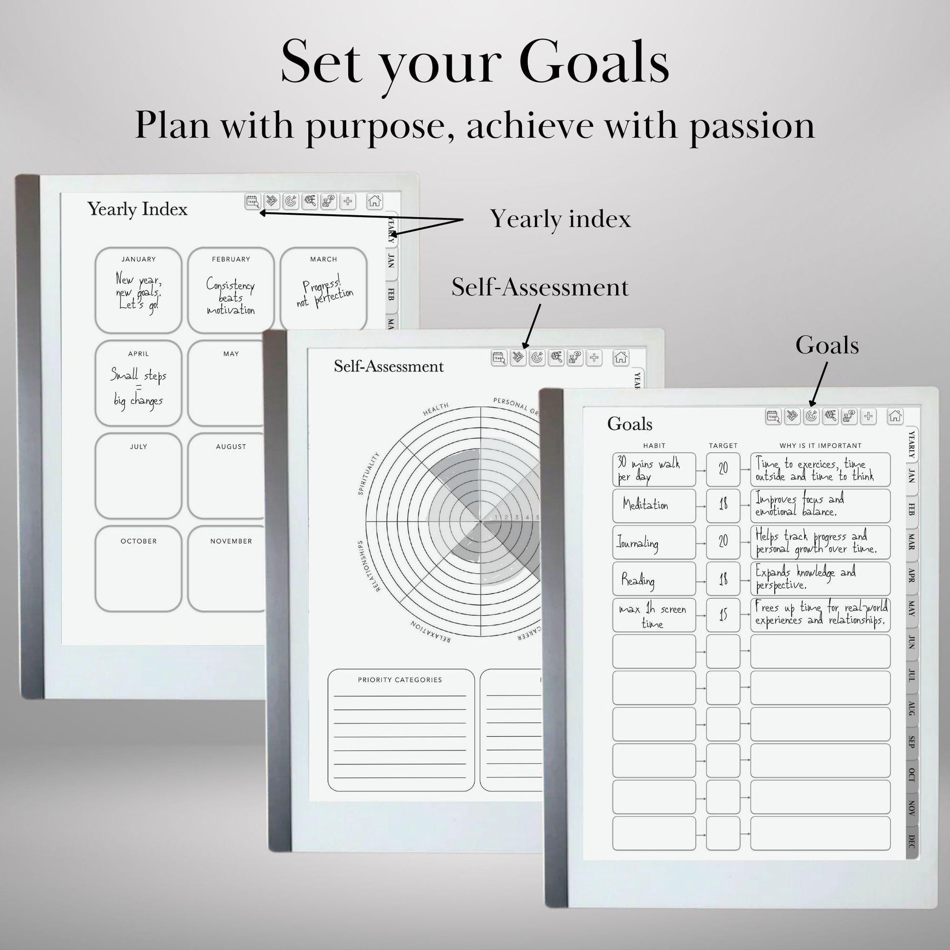 ✔ Hyperlinked Layout – Jump between months, goals, and overview pages in one tap