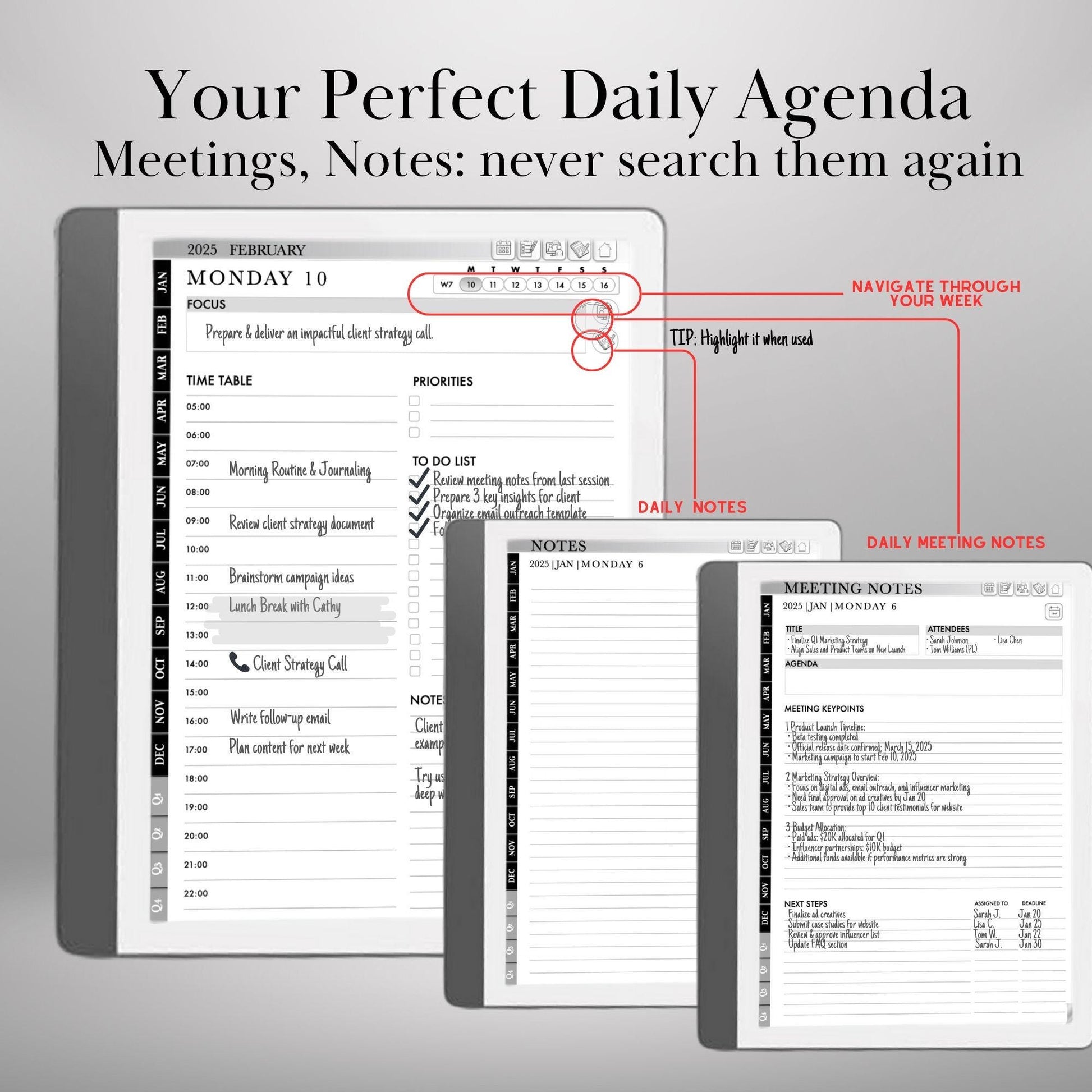 ✅ All-in-One Tool – Combines calendar, task list, meeting notes, and notebooks in a single digital file.