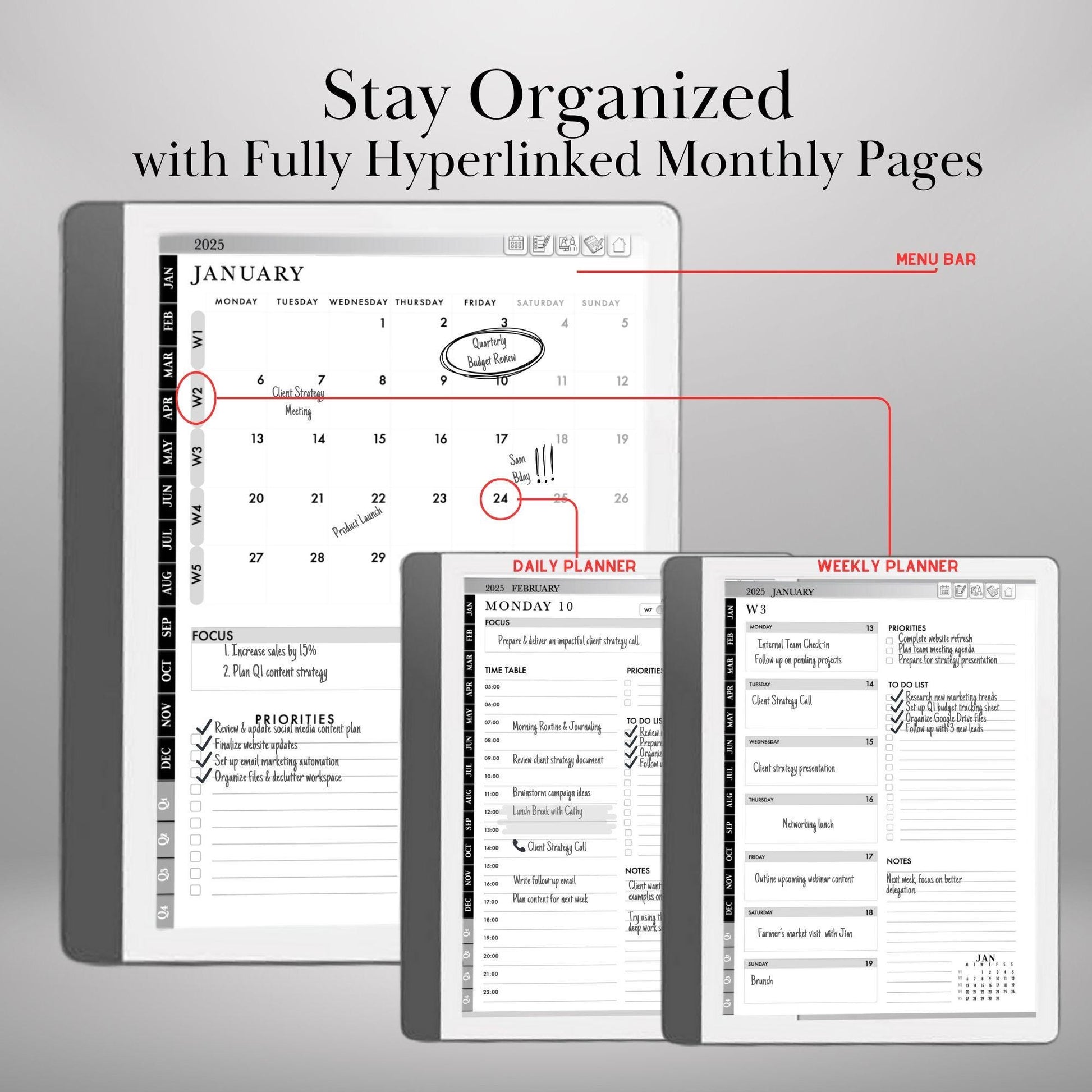 2025 Kindle Scribe Planner – Hyperlinked Daily, Weekly & Monthly Calendar | Productivity PDF Notebook