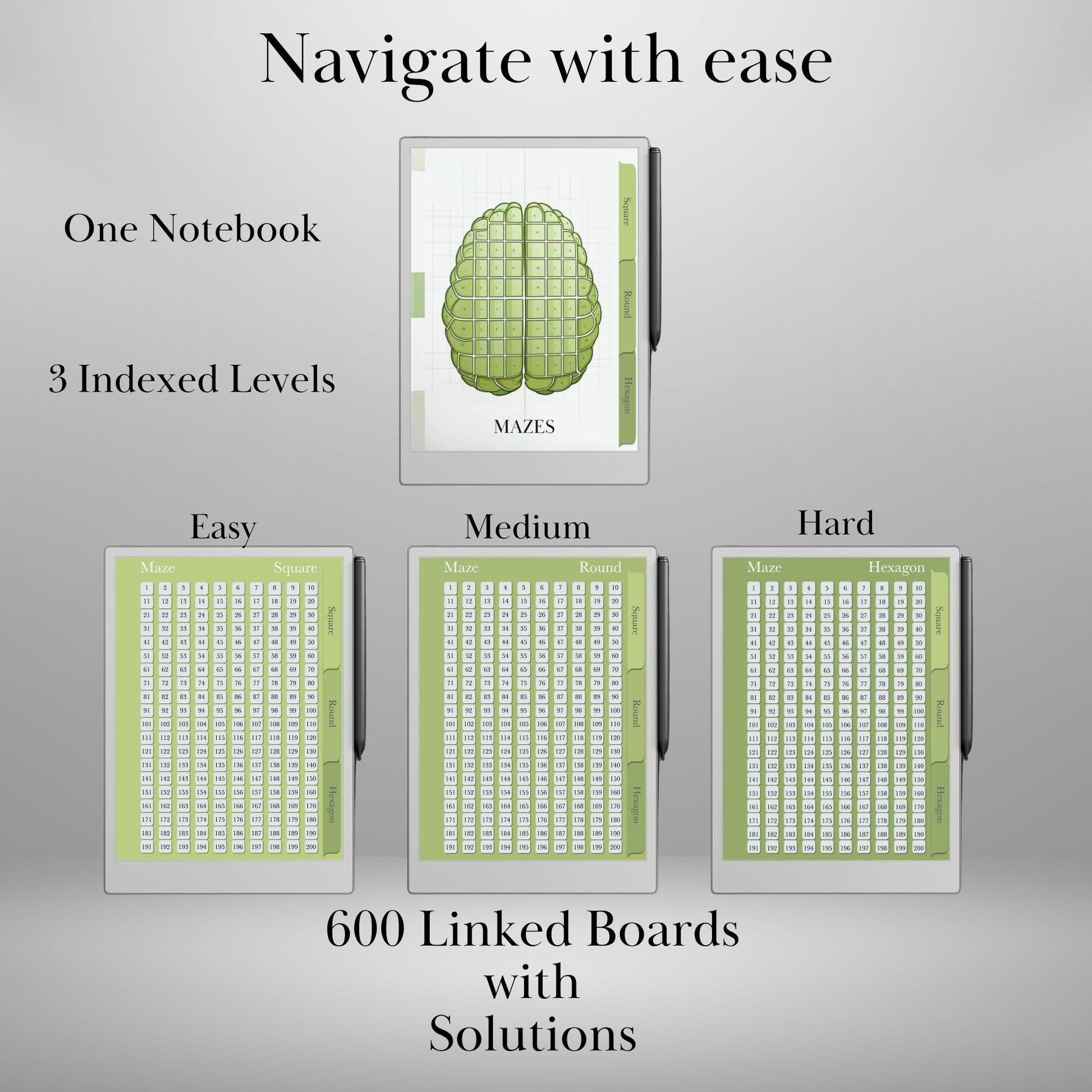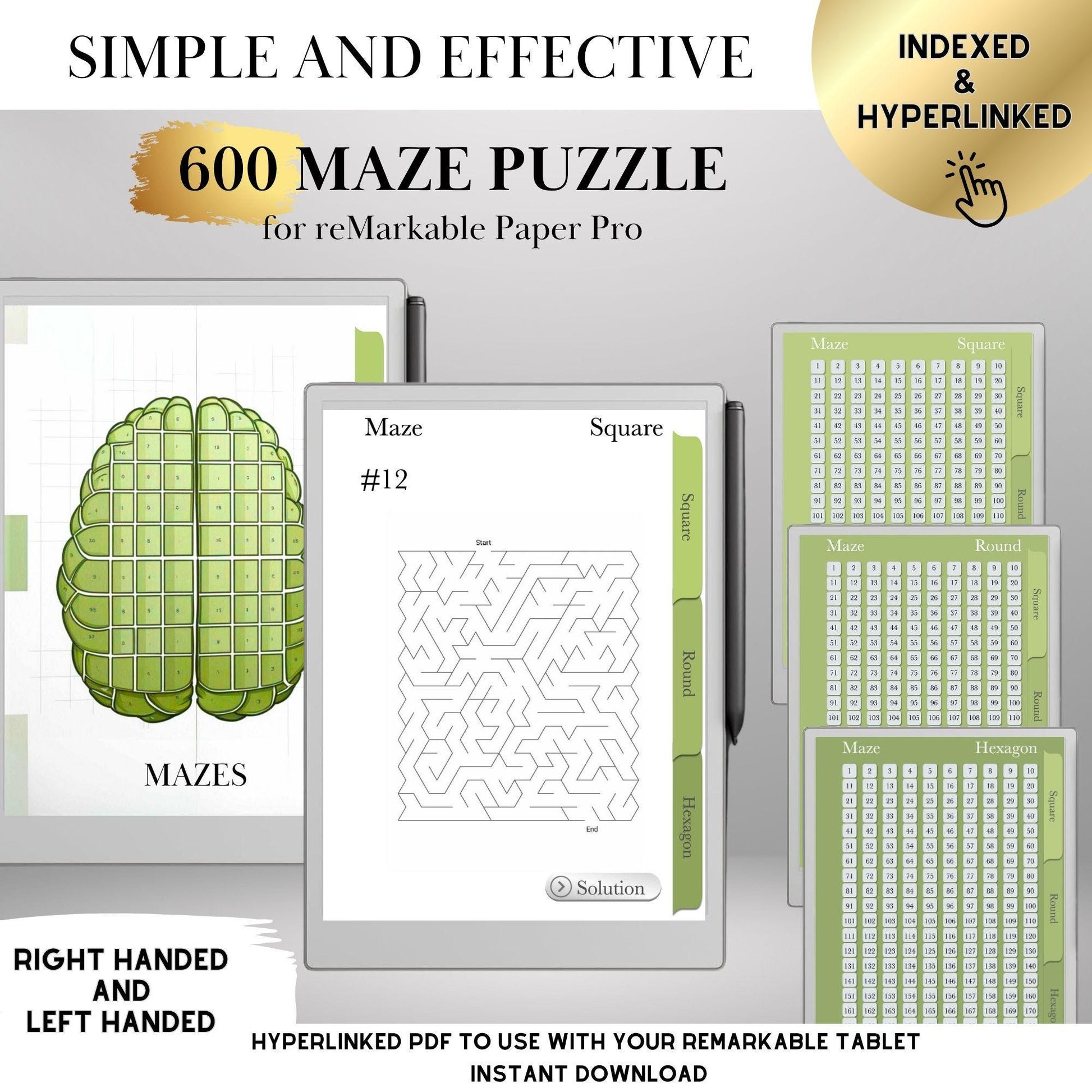 Unplug, unwind, and challenge your brain with this epic collection of 600 Mazes, perfectly crafted for your reMarkable Paper Pro and reMarkable 2. With fully hyperlinked navigation, this interactive e-ink maze book lets you jump instantly between puzzles—no scrolling, no distractions, just pure puzzling fun.
