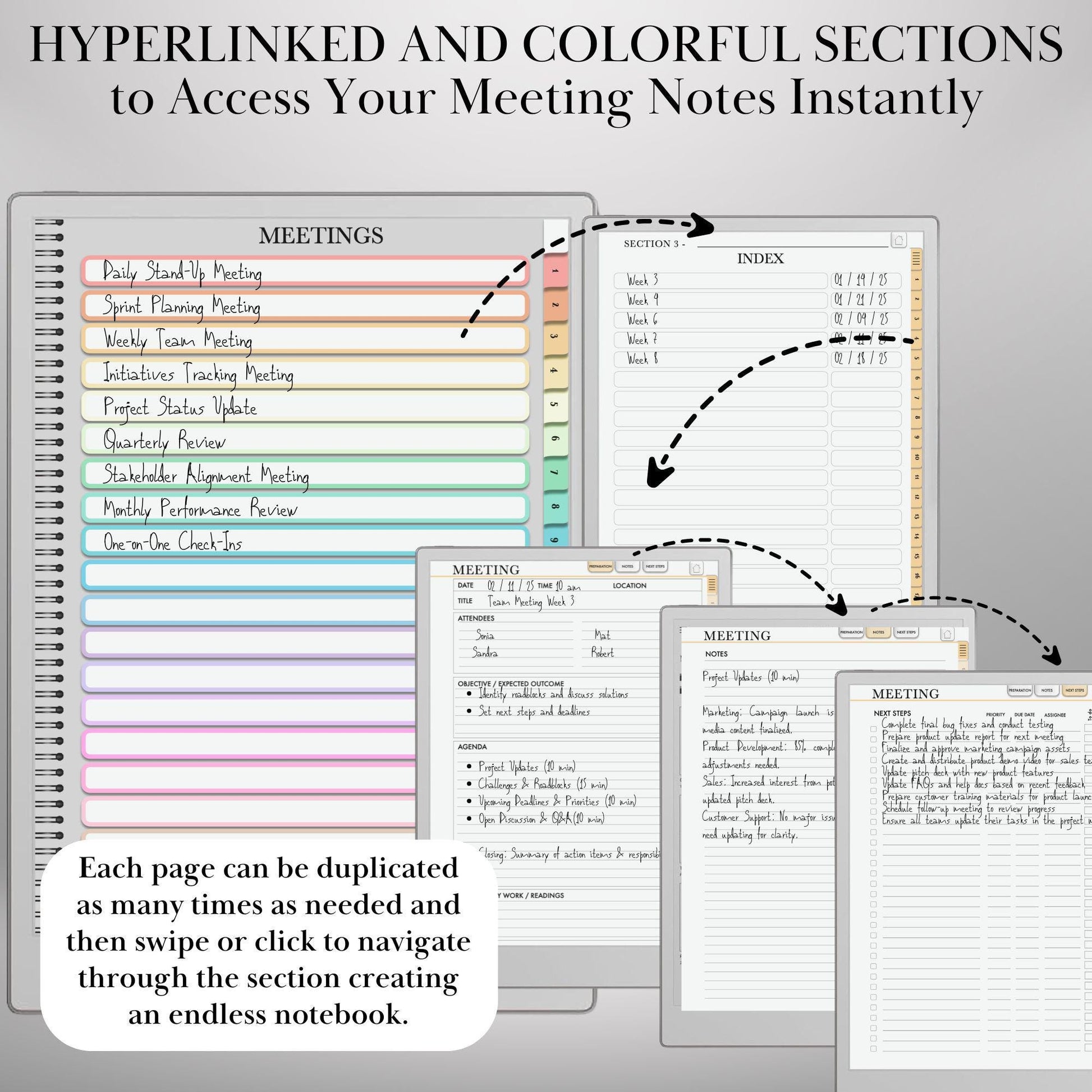 Meeting Notes for reMarkable Paper Pro and Remarkable 2 Hyperlinked Template Meeting Notebook Digital Business and Productivity Template