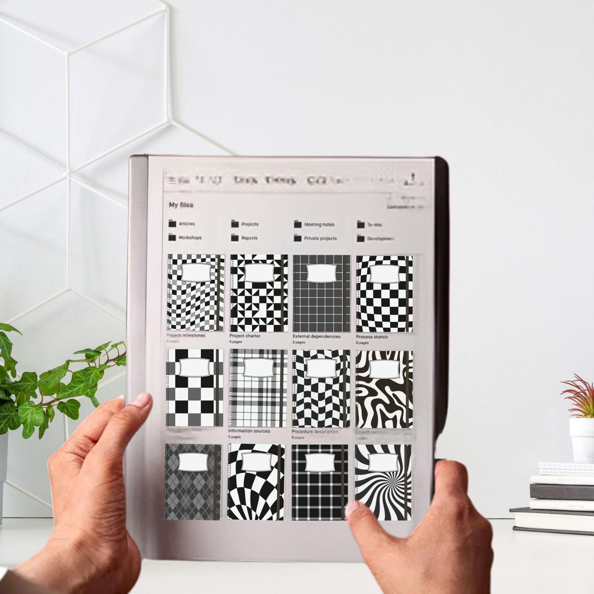 Add a bold and stylish touch to your reMarkable 2 with this collection of 12 minimalist black & white notebook covers featuring fun, modern patterns. Whether you’re organizing work, school, or personal journals, these high-contrast, eye-catching designs will help you stay visually organized and inspired—while maintaining a clean and distraction-free workspace.