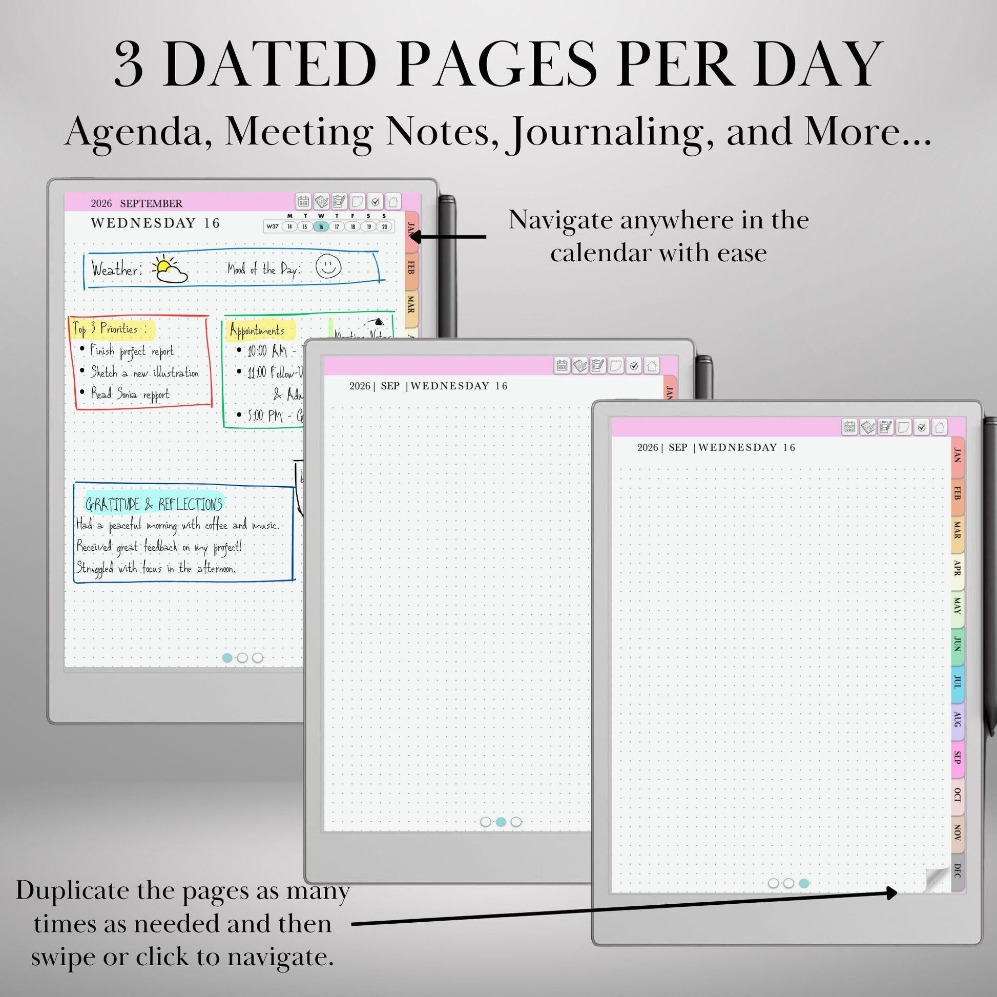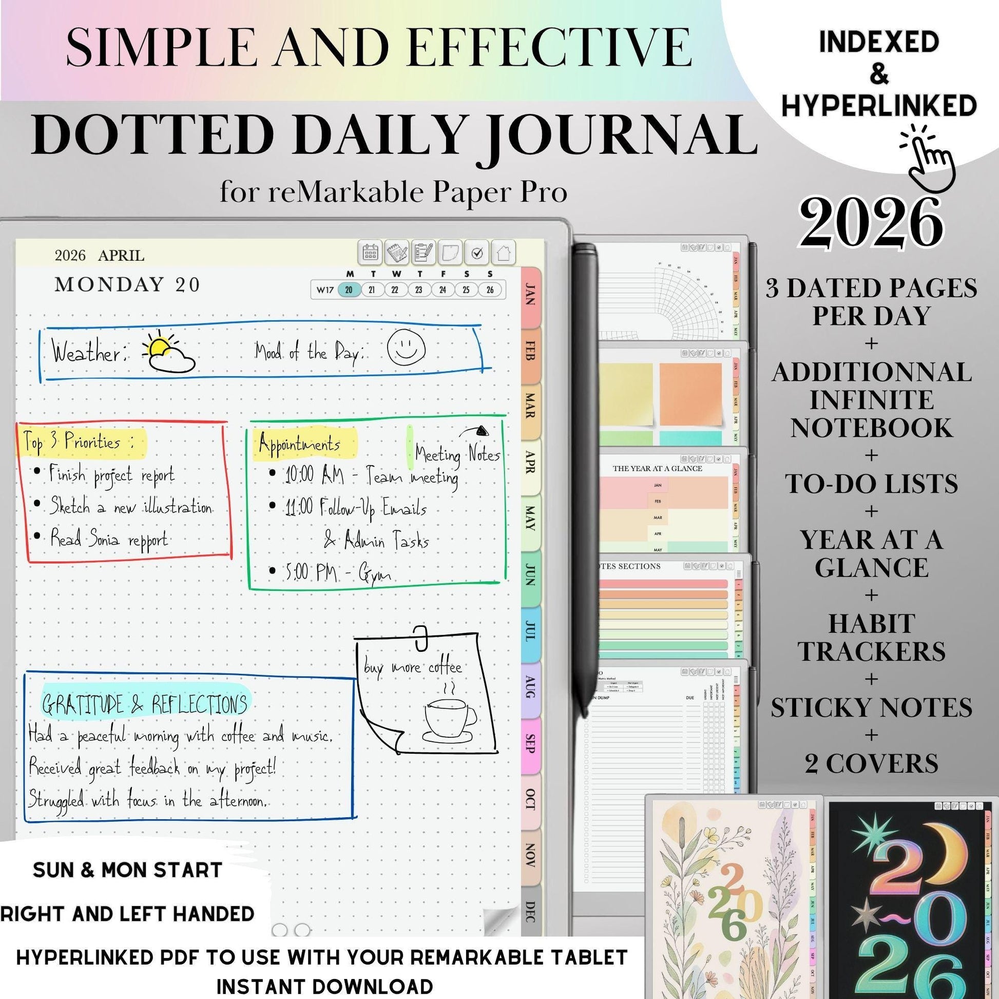 reMarkable Paper pro Daily Journal Planner 2026, Remakable Paper pro Journaling, Hyperlinked Notebook, reMarkable Templates, Digital Planner