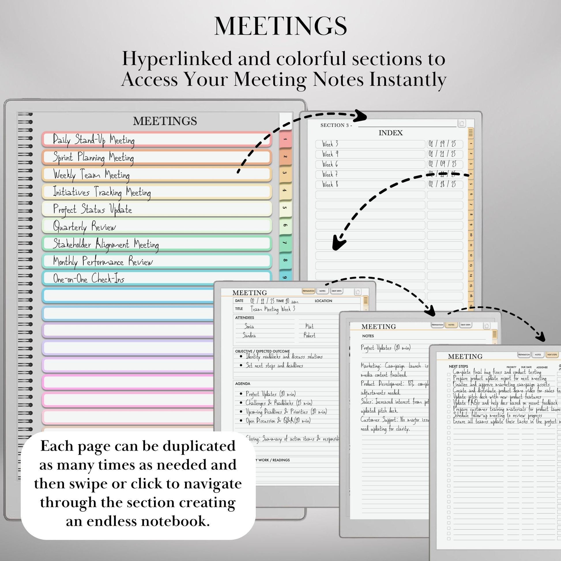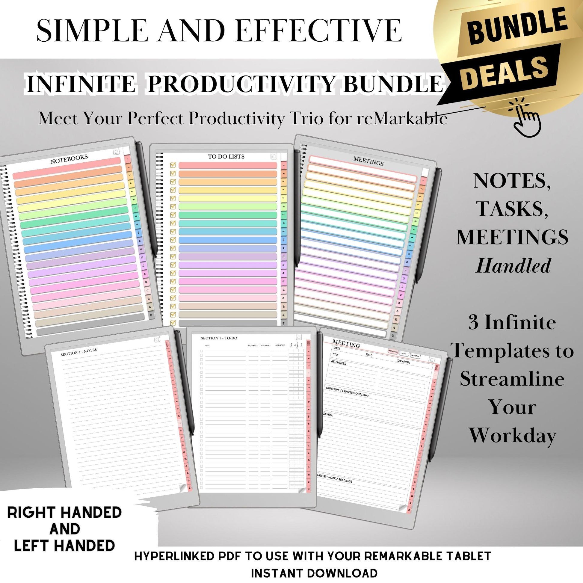Productivity Bundle for reMarkable Paper Pro Template & reMarkable 2 Hyperlinked Notebooks + To-Do Planner + Meeting Notes eInk Templates