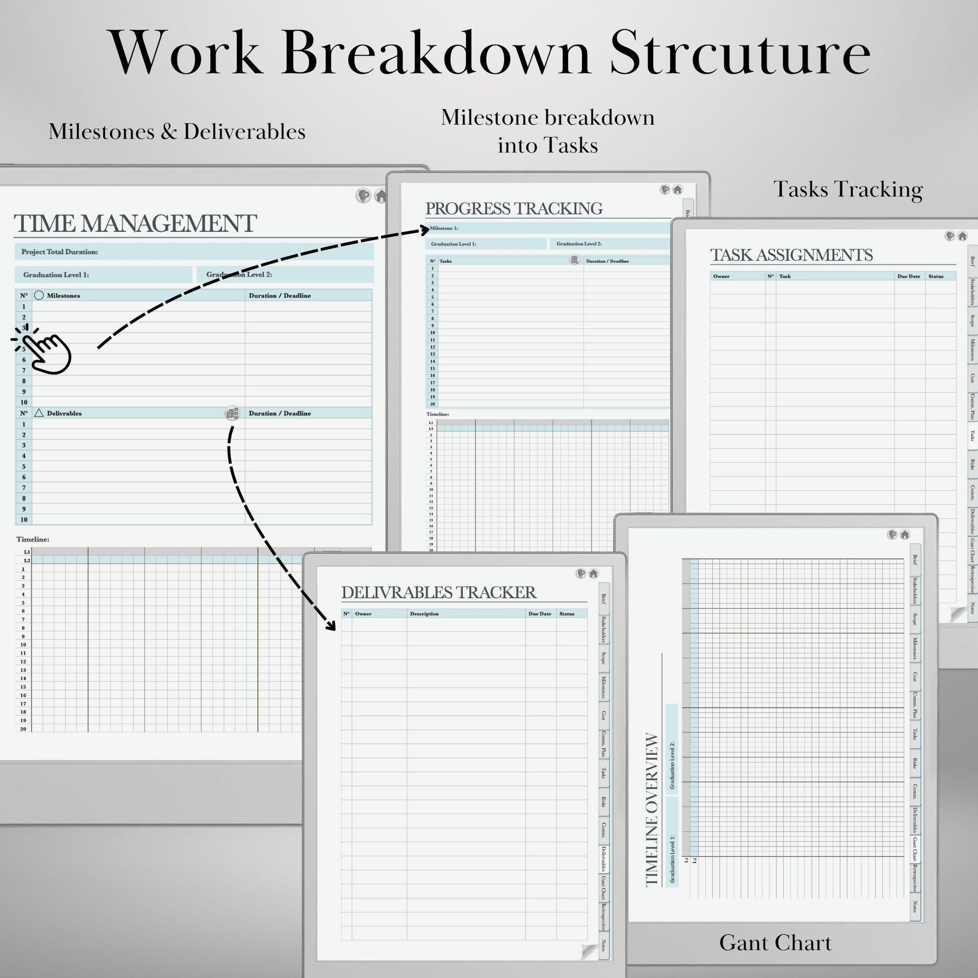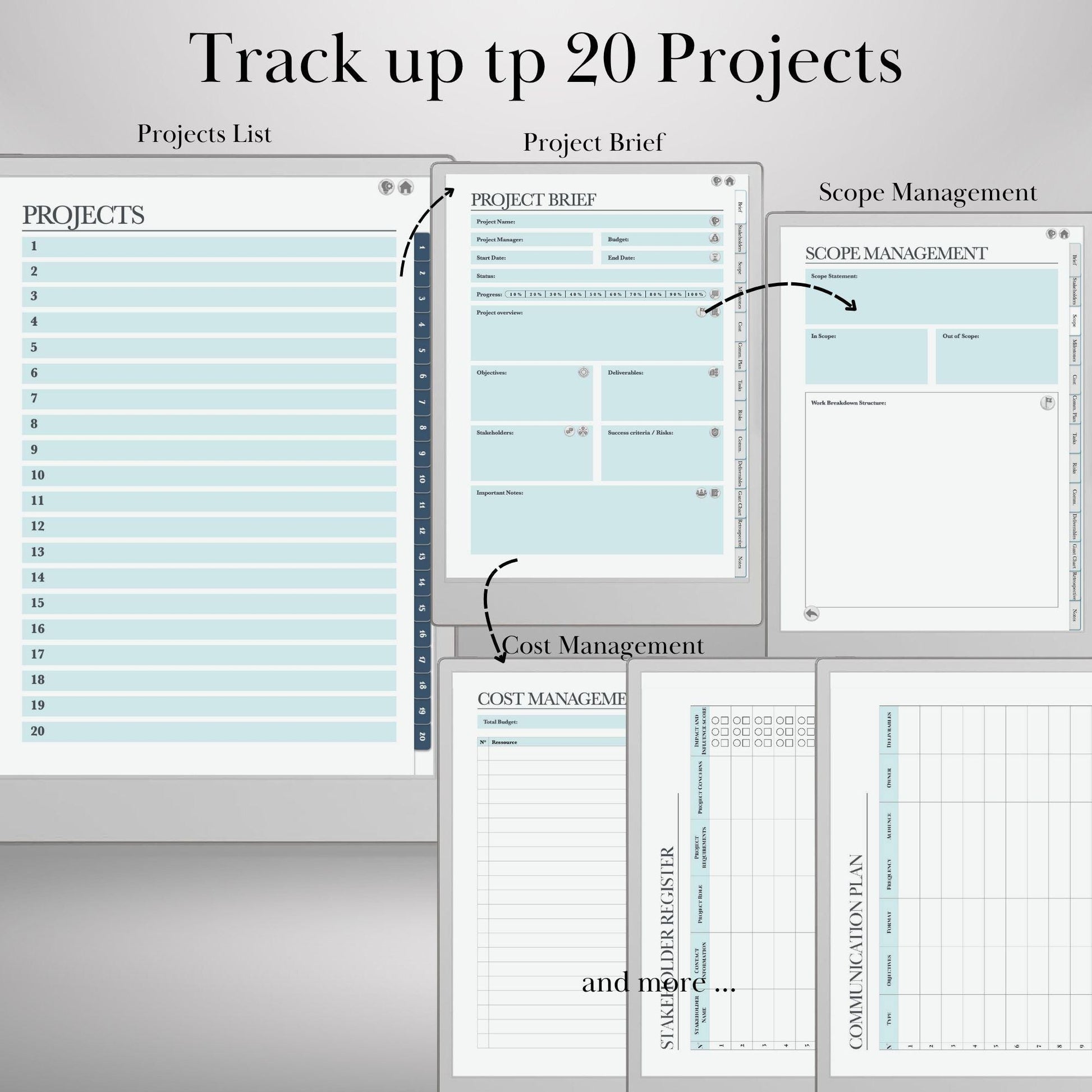 Take full control of your projects with this all-in-one Project Management System, designed specifically for reMarkable tablets. Built around PMI-based workflows, this digital planner allows you to manage up to 20 projects with hyperlinked navigation, milestone tracking, deliverables management, stakeholder registers, and built-in Gantt charts—all in a clean and efficient layout.