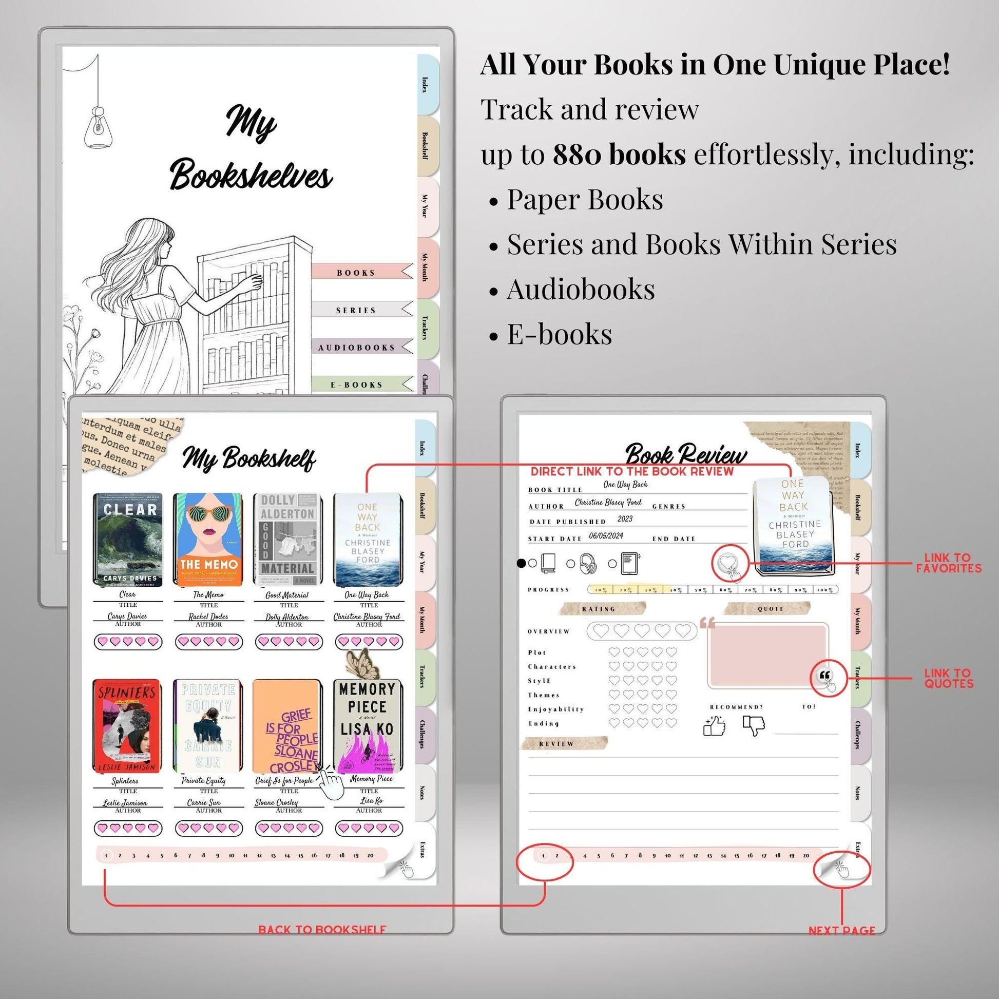 Reading Journal for reMarkable Paper Pro and Remarkable 2 Hyperlinked Book Tracker Template e-Ink Reading Planner template TBR eBook Reviews