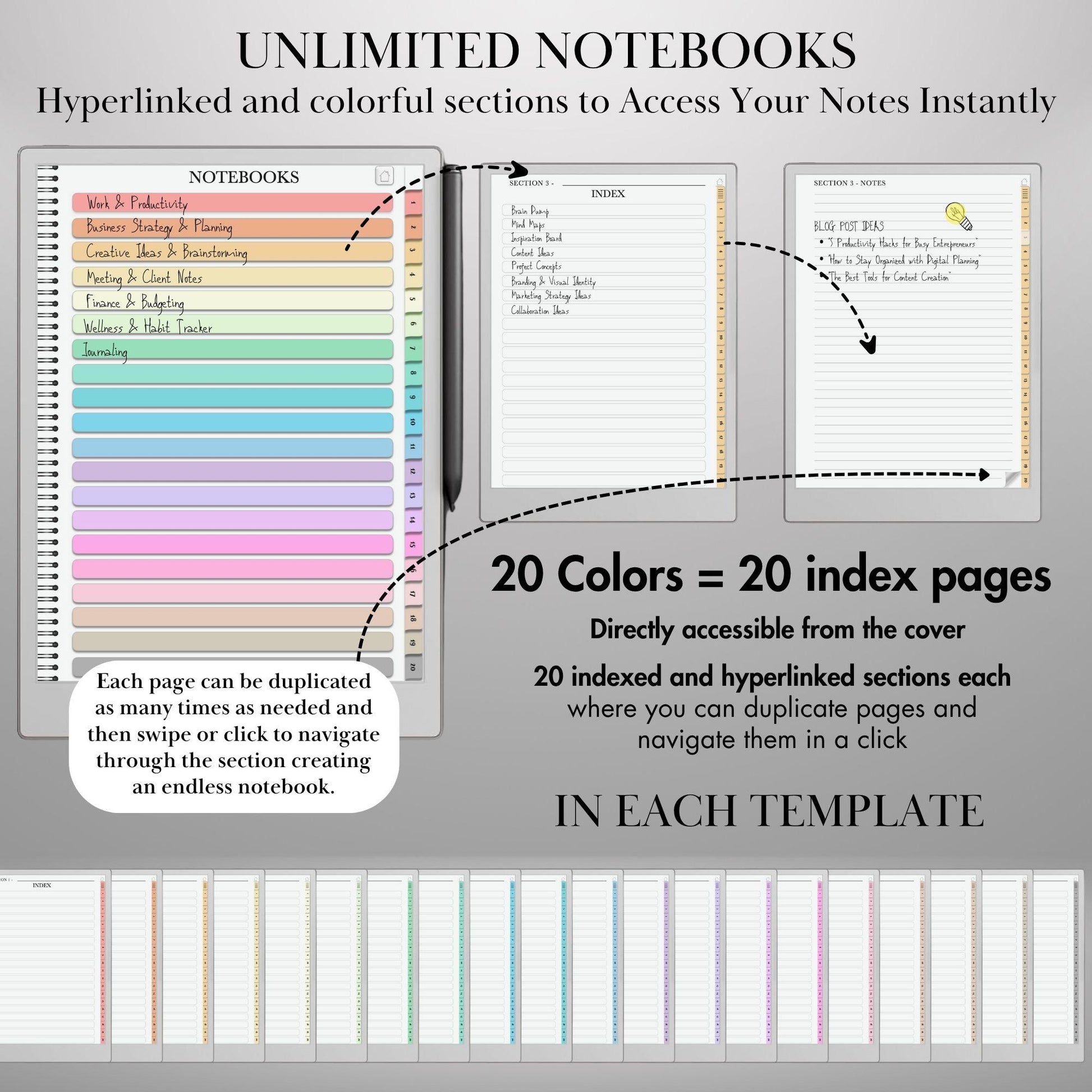 Starter Kit for reMarkable Paper Pro Templates Hyperlinked Digital Bundle & reMarkable 2 with Calendar, Notebook, Stickers, Sticky Notes