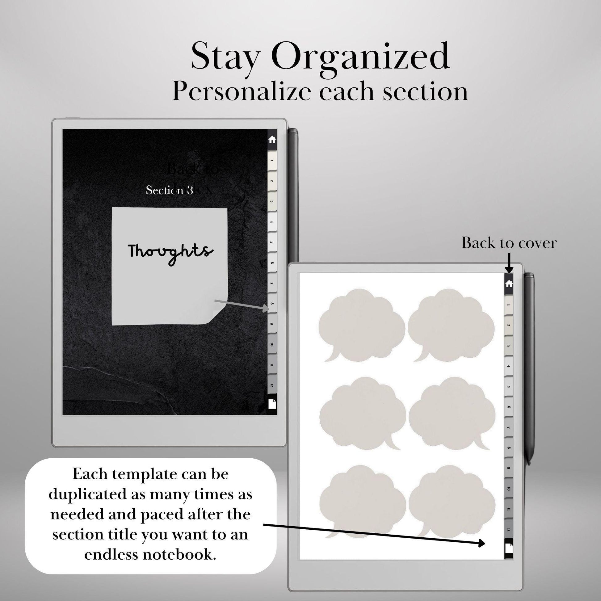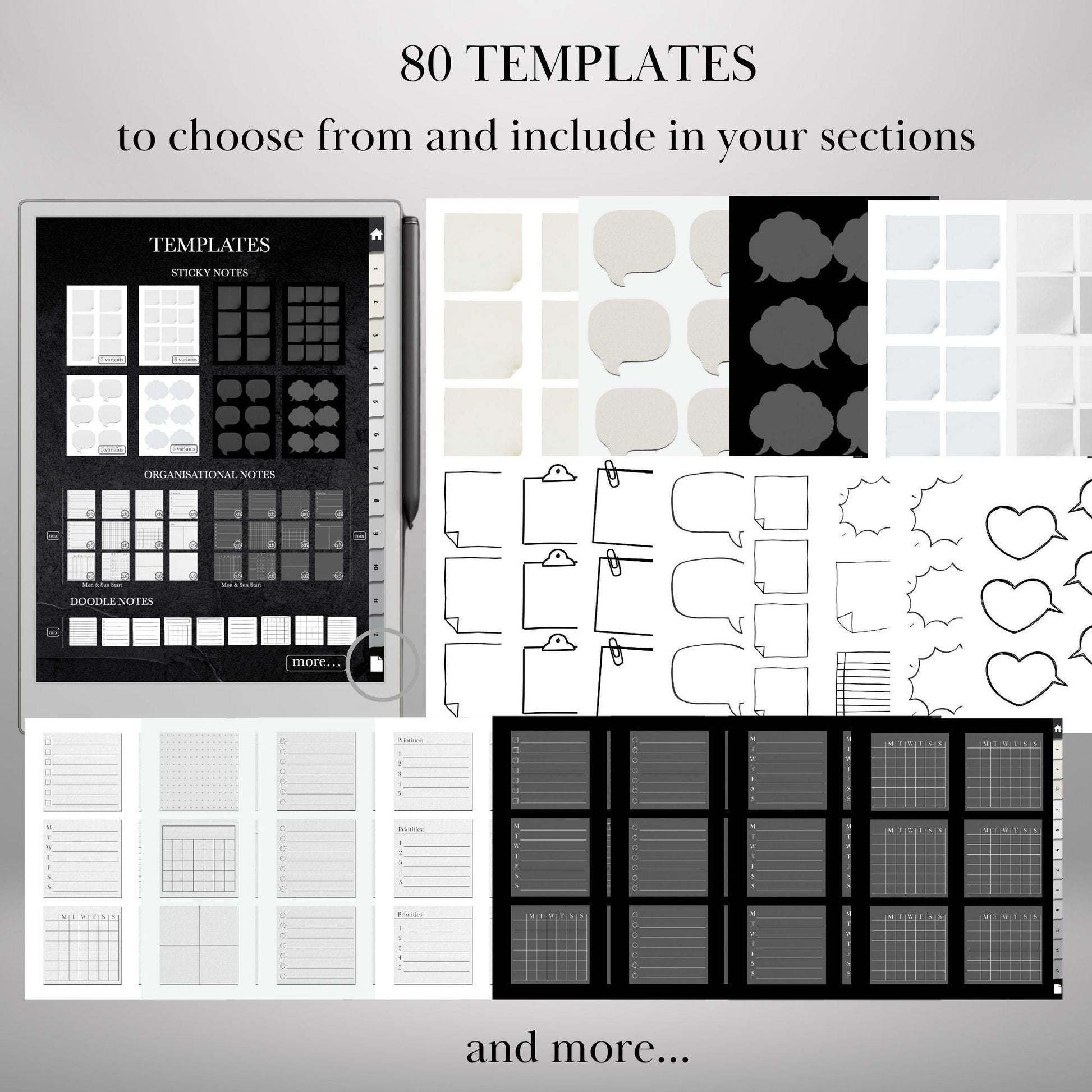 Sticky Notes Bundle for Remarkable 2 Hyperlinked Notebook with 80 Templates & 12 Sections Remarkable Templates Notes E-Ink Tablet templates