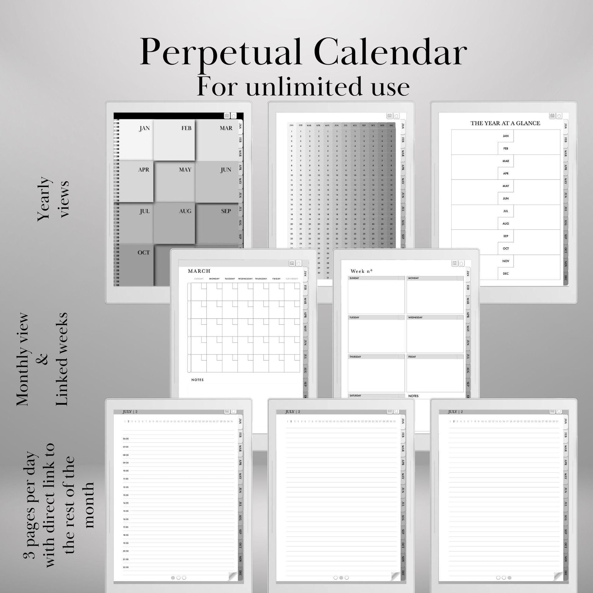 Supernote Template | Supernote Planner Undated Perpetual Calendar | Hyperlinked PDF | Daily, Weekly & Monthly Journal | eink template