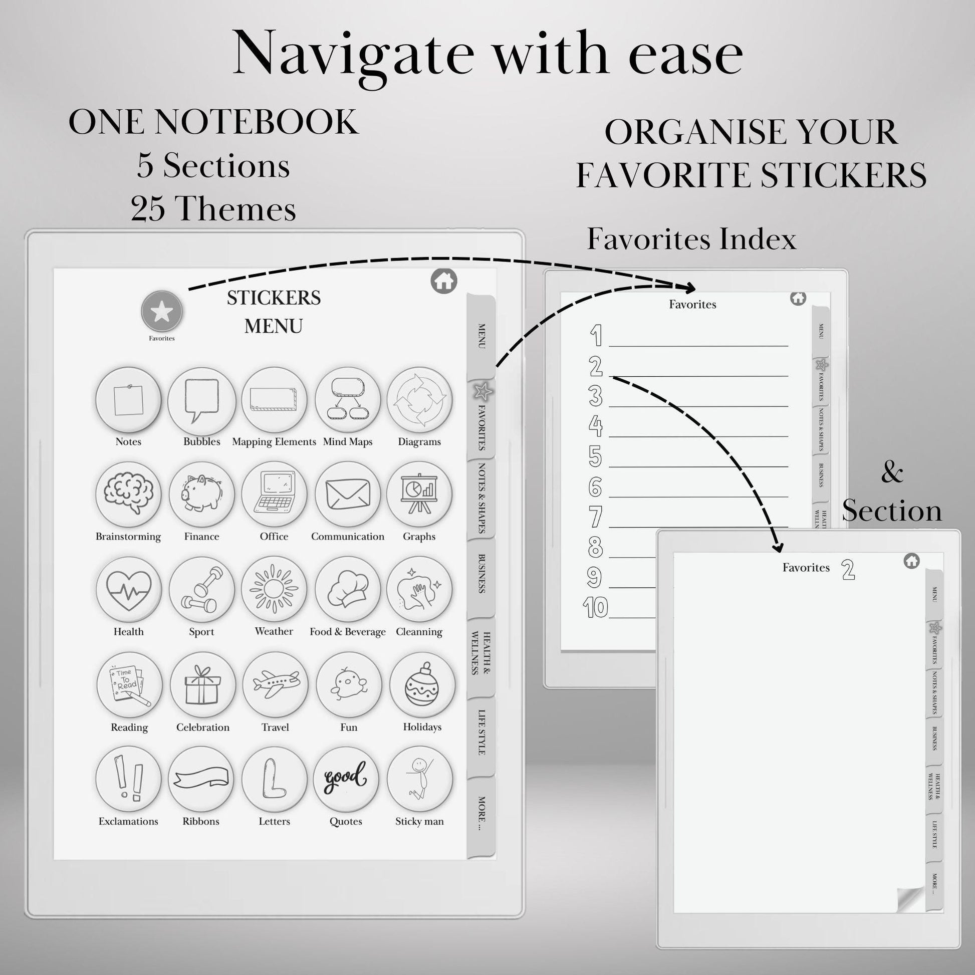 Stickers for Supernote A5X, A6X and Manta Supernote Templates Traceable Digital Stickers, Notes, Shapes & Mind Maps Hyperlinked Notebook
