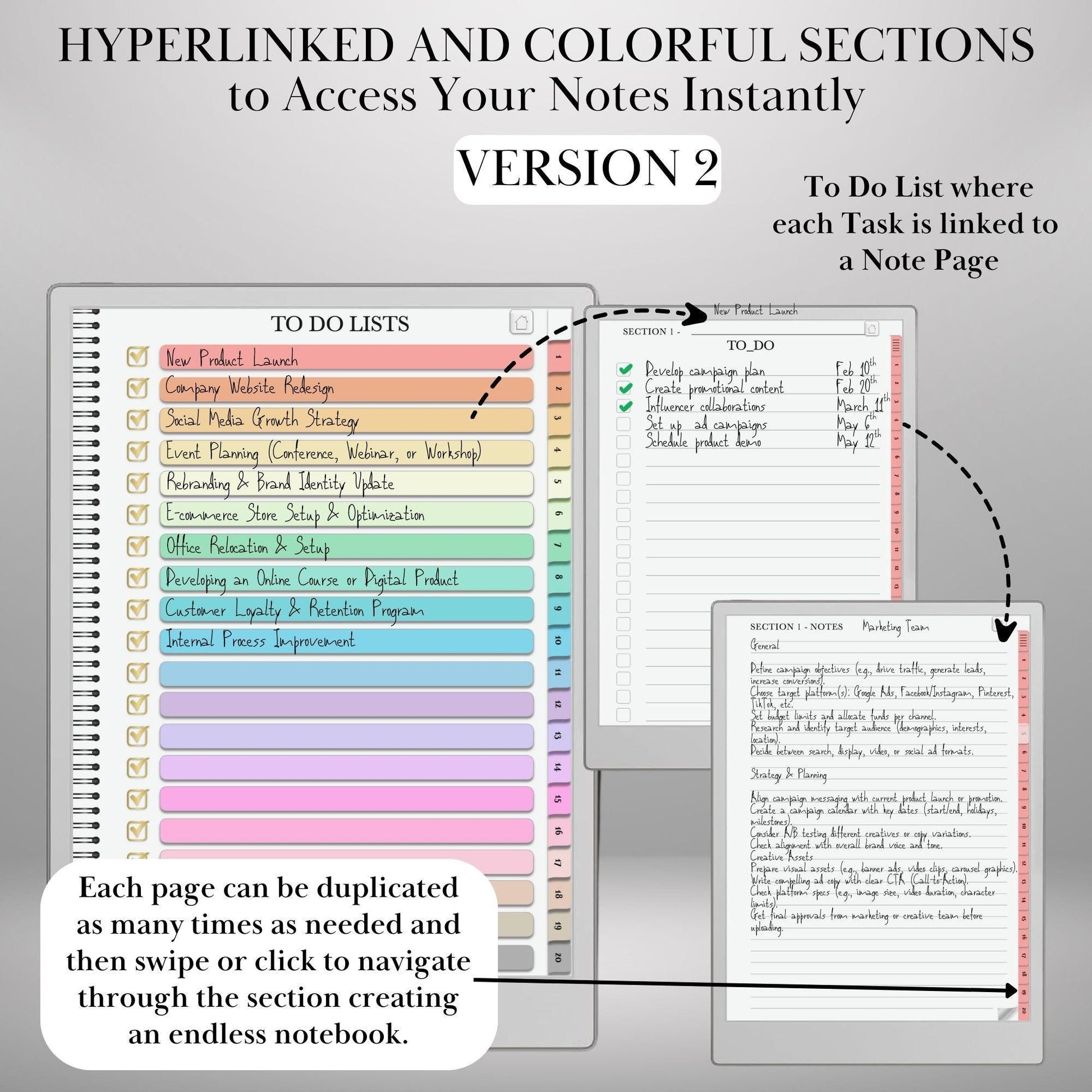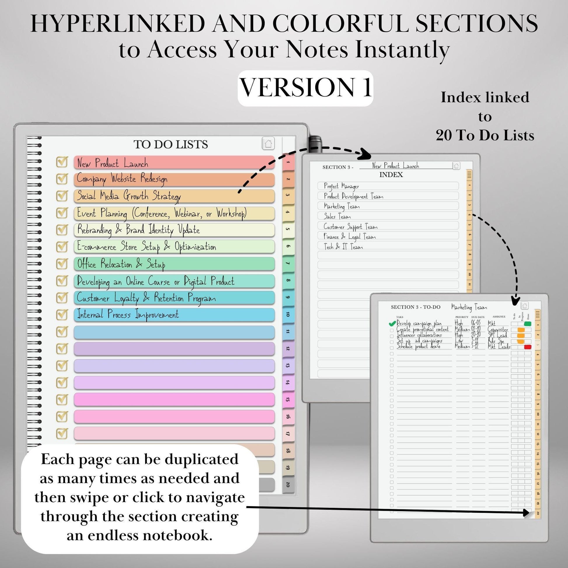 β Infinite To-Do Lists Notebook β Duplicate pages within sections for unlimited note-taking.
