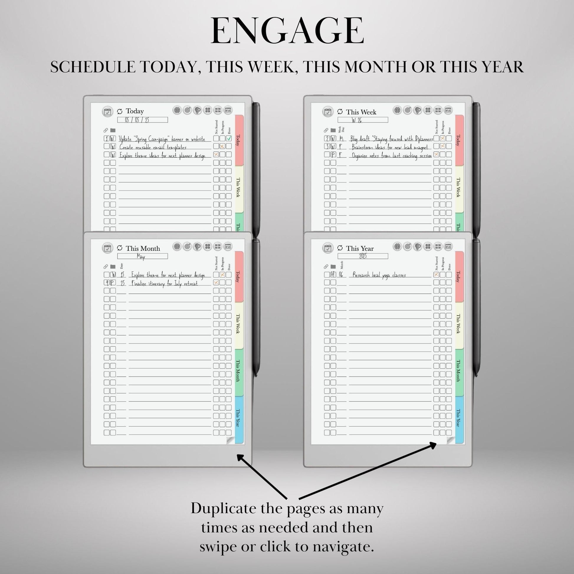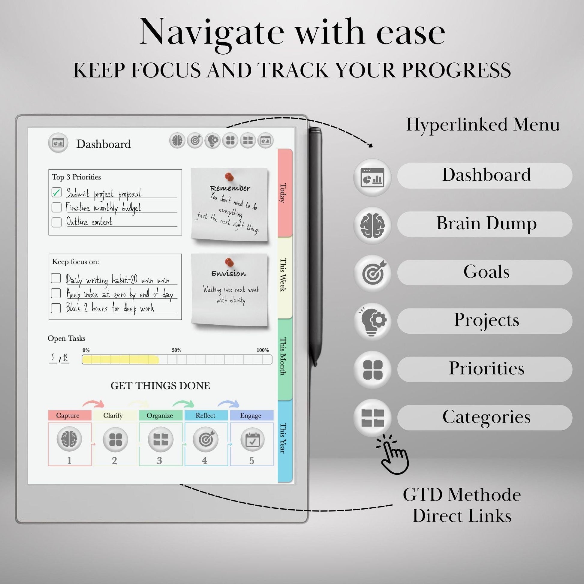 📓 DIGITAL DOWNLOAD – GTD-Inspired Hyperlinked Task Planner for reMarkable 2 & Paper Pro