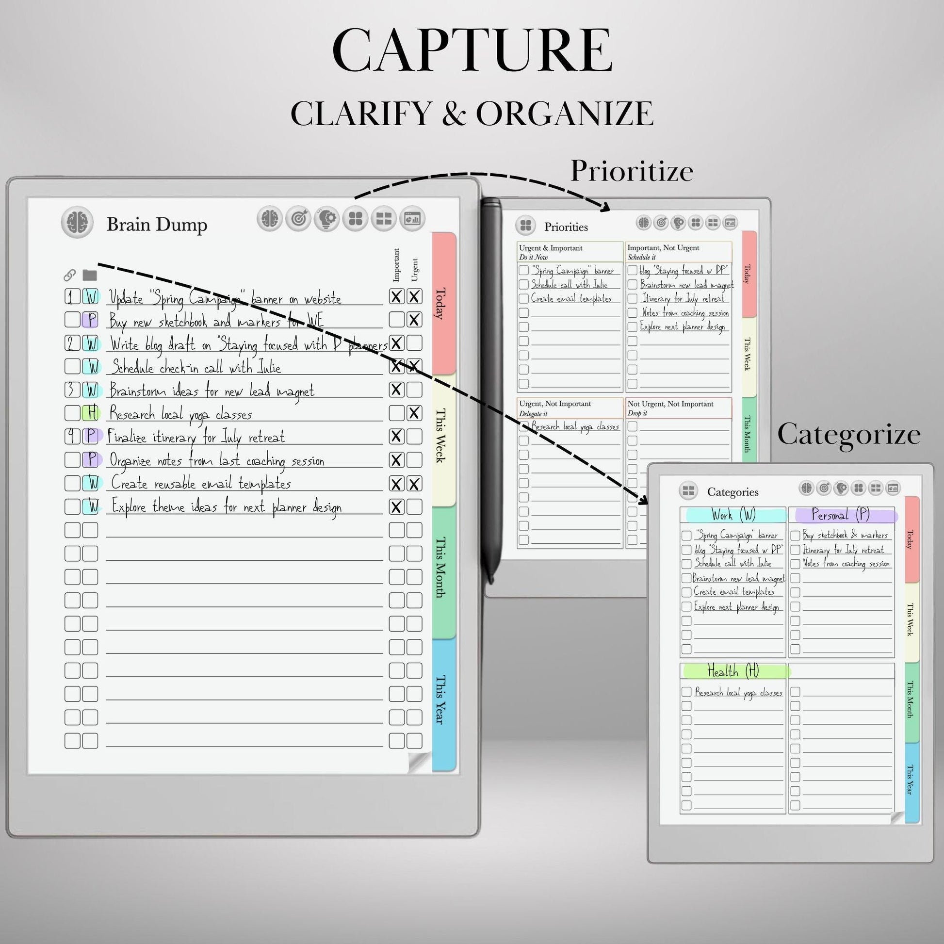 To Do Tracker GTD Planner for reMarkable Paper pro and Remarkable 2 Task Tracker Template Productivity Planner Brain Dump Project Tracker