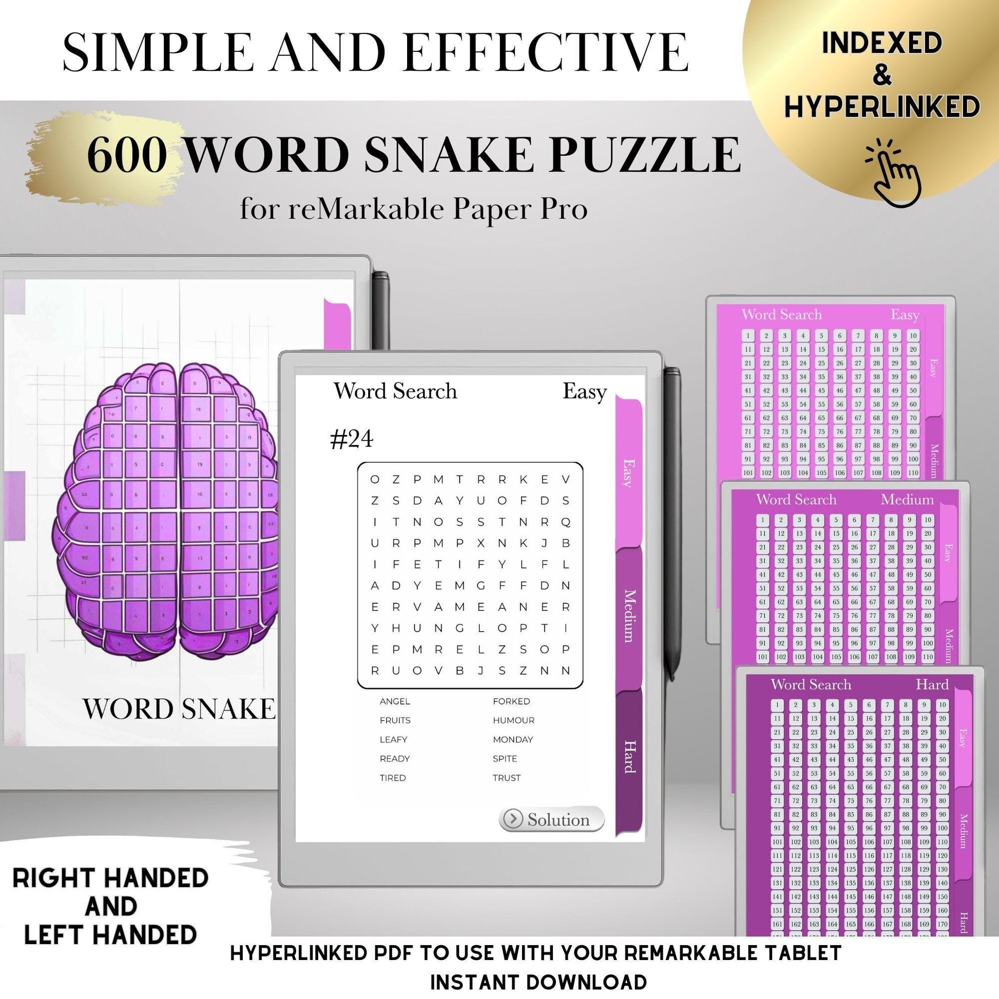 📥 Download the Word Snake Puzzle Book today and enjoy 600 hyperlinked puzzles made for your reMarkable tablet.